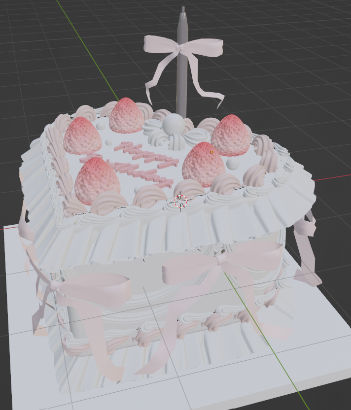 リボンの形を微調整して、ランダム感を演出🍰 リボン含め、全体的な微調整を根気よくやっていきます🍓 #blender #b3d #kanonblenderlabo #modeling #3dcg pic.x.com/pQbvYV8S1t x.com/kanon_labo/sta…