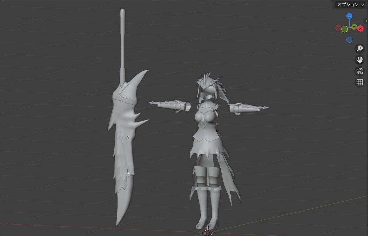 この装備にはこの剣でしょ❗️ やっとできた~😩 テクスチャ:やりたくない ウエイト:もっとやりたくない #blender #modeling #VRC #VRChat #モンハン pic.x.com/fr7RRyrKBu