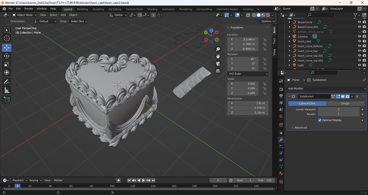 ハート型のケーキと、思い通りの形にならなくて放置した生クリーム #blender #kanonblenderlabo #modeling pic.x.com/hfvwoF6tsE