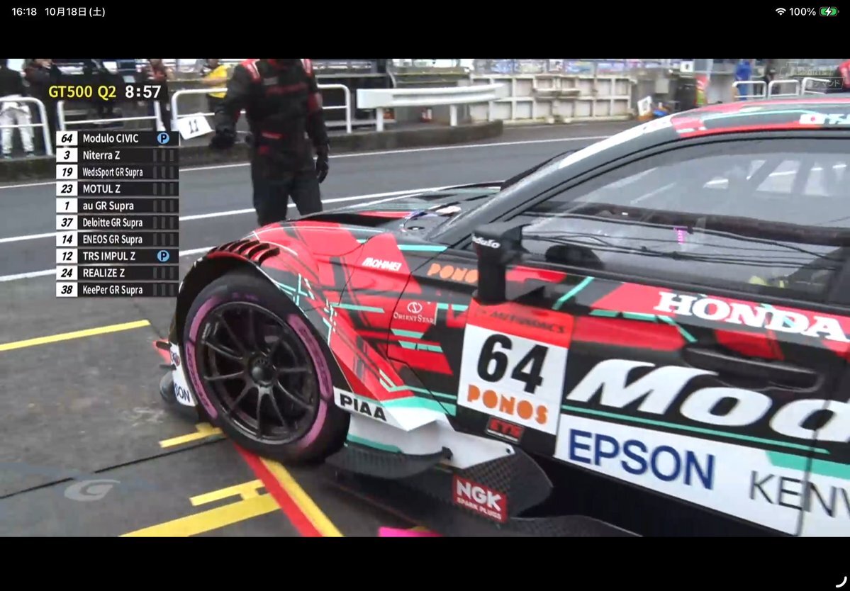 #SUPERGT Rd.7 AUTOPOLIS GT 3HOURS RACEの公式予選、64号車はTOPタイムちゃんりき@riki_okusa 👏 Q2のいざぴー@TakuyaIzawa に向けて #Modulo64 をつけて、熱いコメント待ってるタム✊🔥 #SUPERGT #Modulo #ModuloNakajimaRacing pic.x.com/heosP1KWle