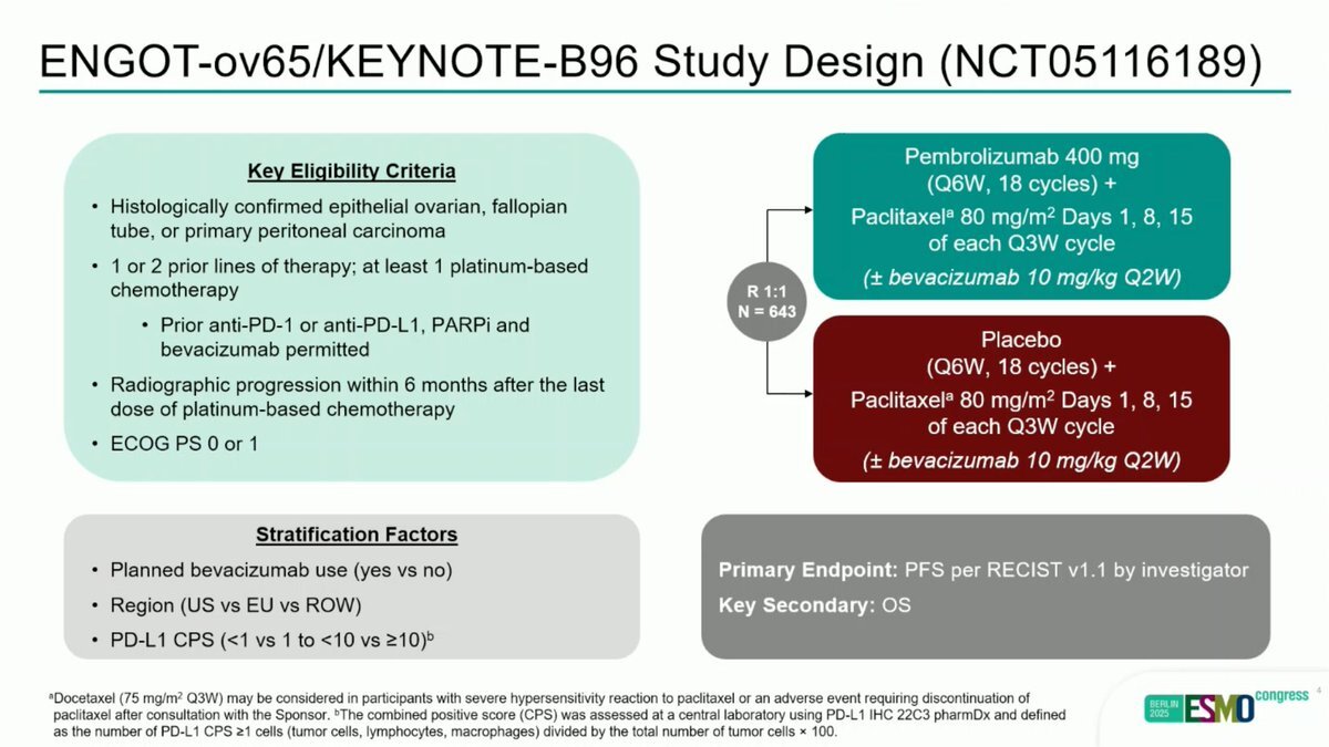 🔥 Awaited results from KEYNOTE-B96 at #ESMO25! ✅ PFS benefit (CPS ≥1 HR 0.75; ITT HR 0.73) ✅ OS benefit (CPS ≥1 HR 0.76; ITT met per press release) Still many questions—biomarkers, bev use, prior PARPi, sequencing, etc.—but great to see new options emerging! #ovariancancer x.com/TaroY_oncology…