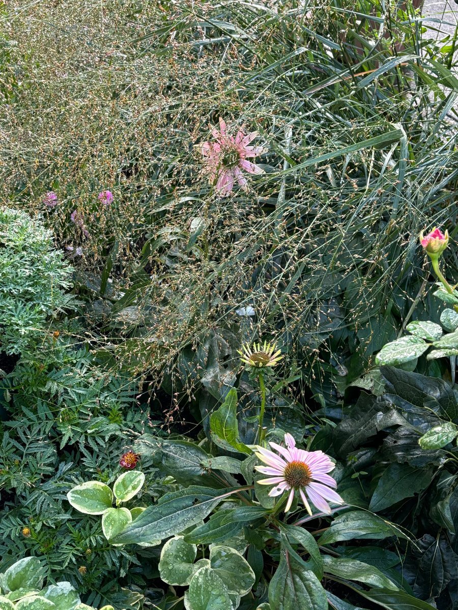 雨上がりの11月のはじまり。 リーフが倒れて花に覆い被さっています。エキナセアがまだまだ咲いています。 #ガーデニング #MyGarden #MyGarden2025 pic.x.com/gOQYT2AxGA