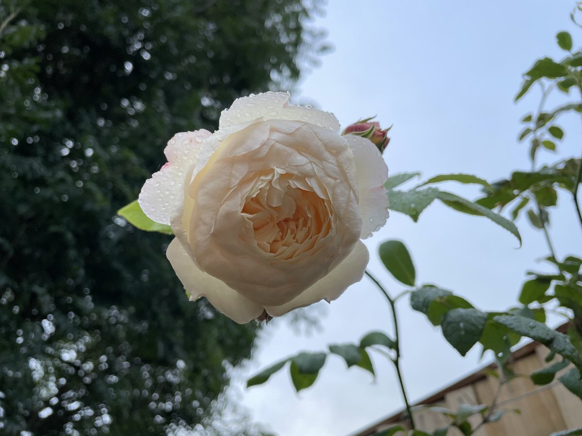 #イマソラ 日本は今、綺麗な夕焼けみたい ですね こっちは朝の10時5分前です クレアオースティンが昨夜の雨雫にうつむきながら咲いてます #mygarden #gardening #うちの庭 #ガーデニング #園芸 #TLを花でいっぱいにしよう pic.x.com/paHWsIqZAr