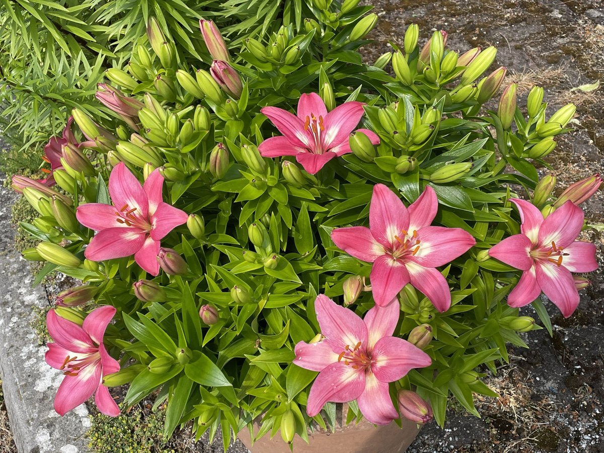 このユリは大きい鉢にまとめて植えるとこんな感じにモリモリッと咲いてくれます💗 ツボミの量エグいの見て👀‼️ #mygarden #gardening #Lily 'Levi' #うちの庭 #ガーデニング #園芸 #TLを花でいっぱいにしよう pic.x.com/3LEgQkUbYo
