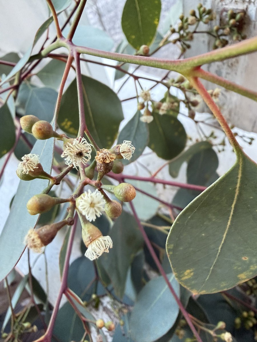 ユーカリポポラスの花が咲いてた😊 7月始めに蕾(ポポラスベリ)を見つけてから、いつ咲くかなあと思いながら高い所だから忘れてたけど、望遠で撮ったらチョコチョコ咲いてた。4ヶ月もかけてやっと咲いたんだね✌️ユーカリらしい花だ。 #ユーカリポポラス #ユーカリポポラスの花 #mygarden pic.x.com/yxqR6ILiBh