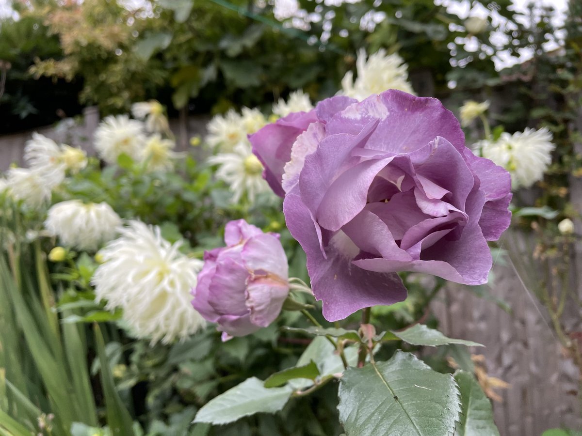 バラ 'Blue for you'💜の後ろに咲いているのは、ダリア '月よりの使者'🤍 まだまだ綺麗に咲き続けてくれていて嬉しい☺️ #mygarden #gardening #flowers #うちの庭 #ガーデニング #園芸 #TLを花でいっぱいにしよう pic.x.com/9cBlSmQS7U