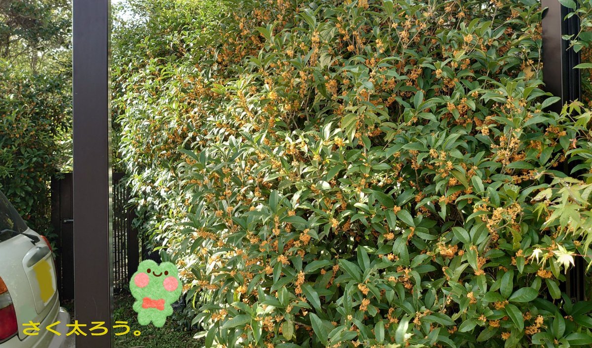 (入院する前に撮りました) 金木犀 が 好きなので 家を建てた時 生け垣を キンモクセイ にしてもらいました 切り花にし放題です (今年はお腹の調子がよくないので あんまり切ってこれなかったけど) #キンモクセイ #庭さく花 #MyGarden #TLを花でいっぱいにしよう pic.x.com/Csm1GyHfwh