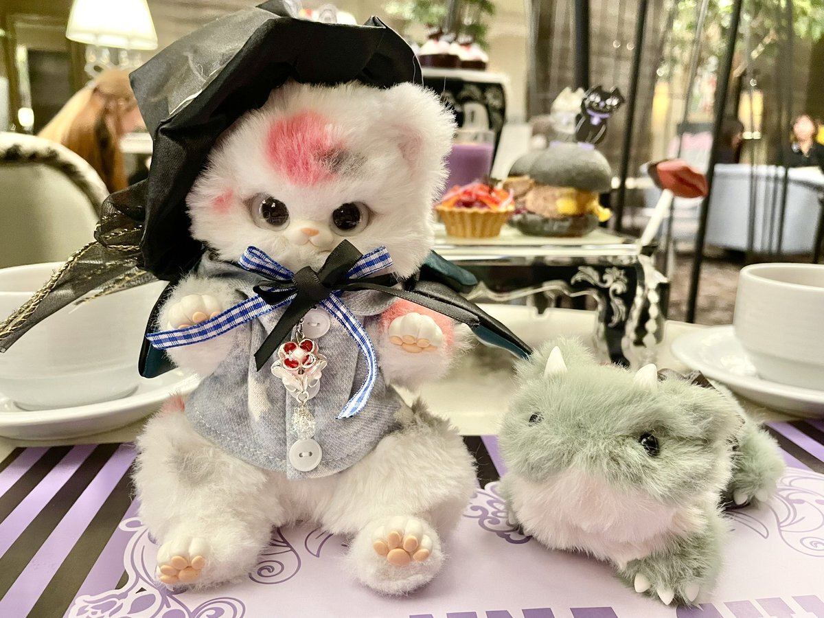 恋鯉くんとマリモも美味しい料理とカフェの雰囲気にご満悦✨ 恋鯉くんにはハロウィンも近いので魔法使いの帽子とマントをつけてもらいました🧙 なんだか魔法が使えそう?笑 マリモは初お出かけ!やっとお外に行けて楽しそうでした☺️ またお出かけしようね♪ #ポタモチドール #noaの小さな妖精 pic.x.com/stZK3s1b5n