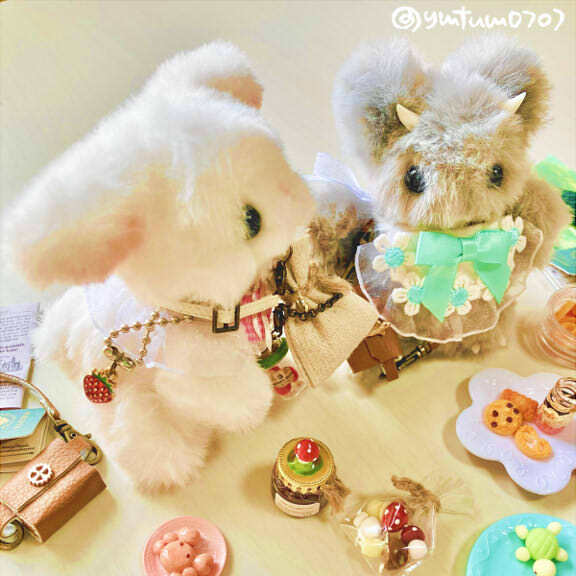 キキちゃんとケケぴょん 「いいものたくさんとどいたよ🍎🍄」 「すてきなかさ!すまほもあるよ✨」 「わーいるぅくんとおそろいかも!ありがとうのおでんわしようよ」 「もしもーし📱」 「おかしおいしかったよー🍪」 #noaの小さな妖精 #ぬい撮り pic.x.com/hrm9HvbGAD