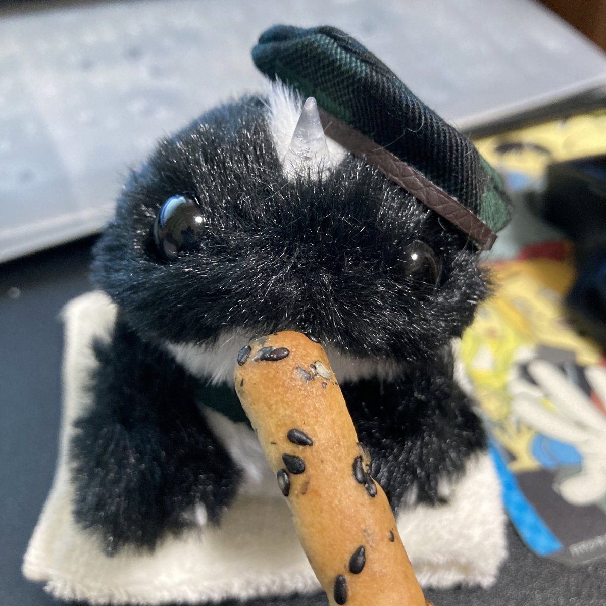 今日のお供はクロルカ⏳ 今日はポッキー&プリッツの日! 家になかったので、代わりにギンビスさんのセサミスティックがおやつになりました🌸 クロルカもさくさく好き? くりくりの目でじっと見てました🥰かわいい! 棒状のお菓子はおいしいものが多くて素晴らしいです✨ @noa_fairy_ #noaの小さな妖精 pic.x.com/y0OEuCQDdU