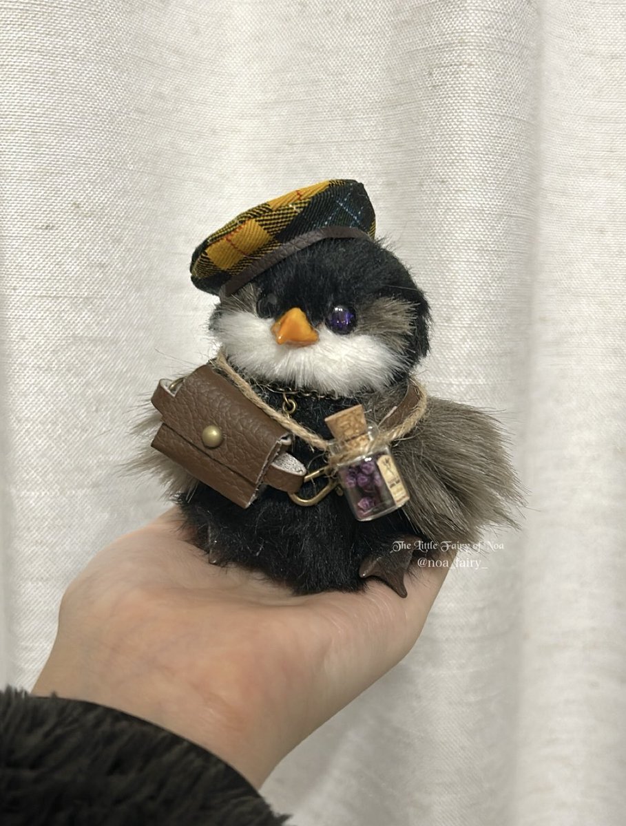 冬の冷たい空の星の瞳を持つパフィー。 星の子ペンギンと呼ばれている 暗闇から身を星に見立て守るためにこの瞳になったと言われている。 争いには向かず、体は弱く臆病 いつも持ち歩いている花の蕾がお気に入りだそう😌 #アートドール #noaの小さな妖精 pic.x.com/Dwfo4jmLRE