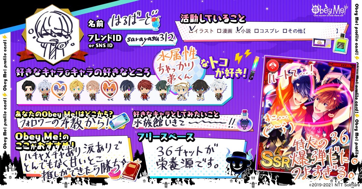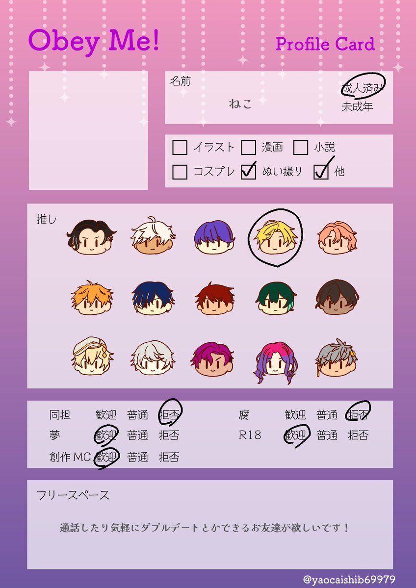 【再】新アプリリリース前にお友達探しです꜀^. ̫.^꜆ 都内で遊べるお友達が出来たらなと思います…! 各一垢もあります✨️ 今までの私のおべみオタ活は詳しくはツリーへ #おべいみー自己紹介テンプレート #obeyme好きさんと繋がりたい #おべいみー好きさんと繋がりたい #obeyme #おべいみー pic.x.com/Do9WgFZJIJ