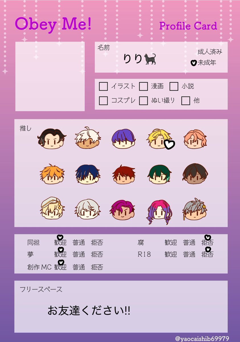 #おべいみー好きさんと繋がりたい #obeyme好きさんと繋がりたい タグとテンプレート使用失礼します🙇‍♀️ 2⃣男推しの4年振りの出戻り勢です! フリスペの赤線が地雷な人気を付けてください😞 ♡orRTで気になる方お迎え行かせていただきます👀 English by an ALT! pic.x.com/oPoCuzJPtd