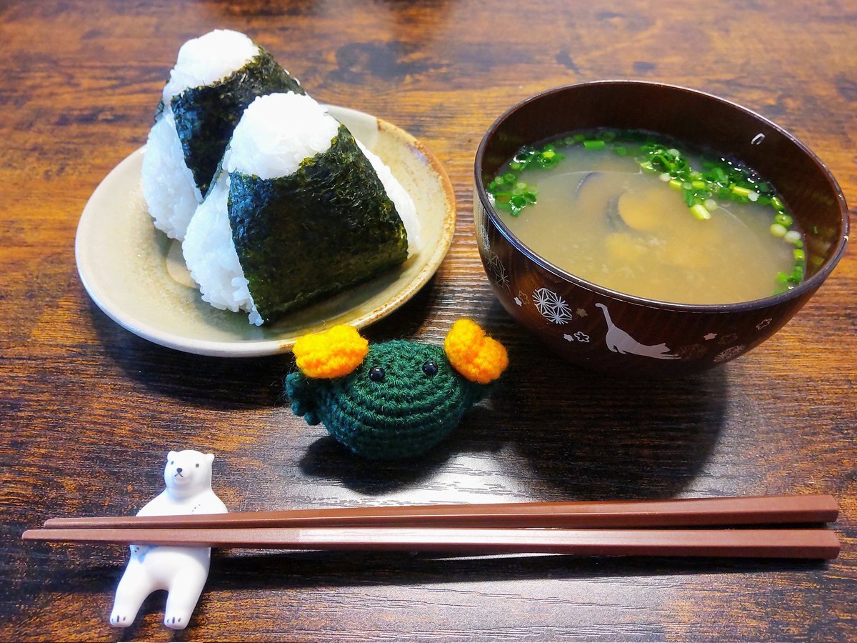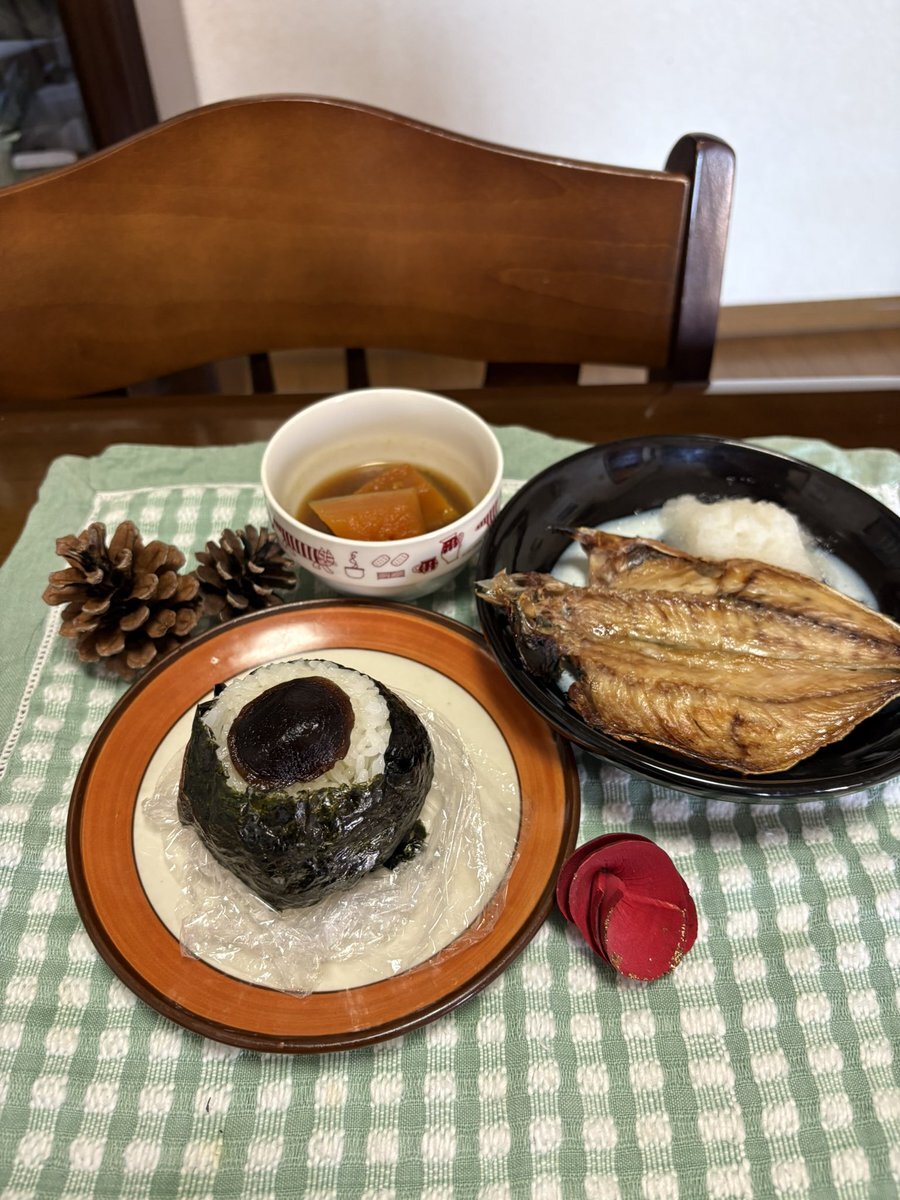 朝ごはんでおにぎりアクション!と思ったら昨日で終了していた…かぼちゃのかにと共に🦀🍙 おにぎり(梅干し、たらこ)しじみの味噌汁 #かにのカーニバル #OnigiriAction pic.x.com/K8mpj8G45l