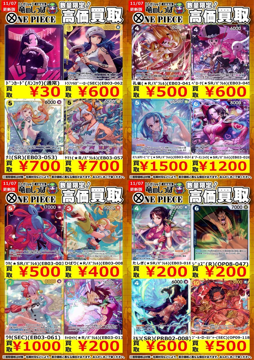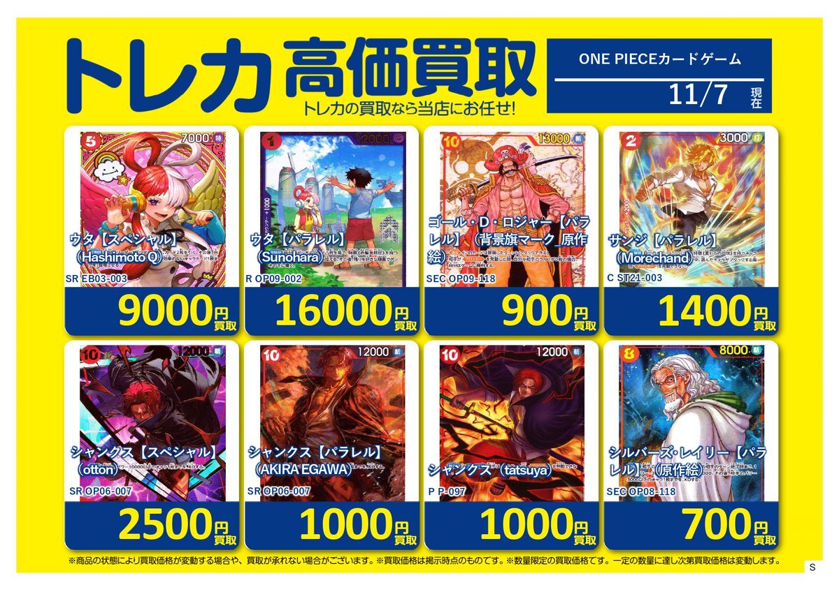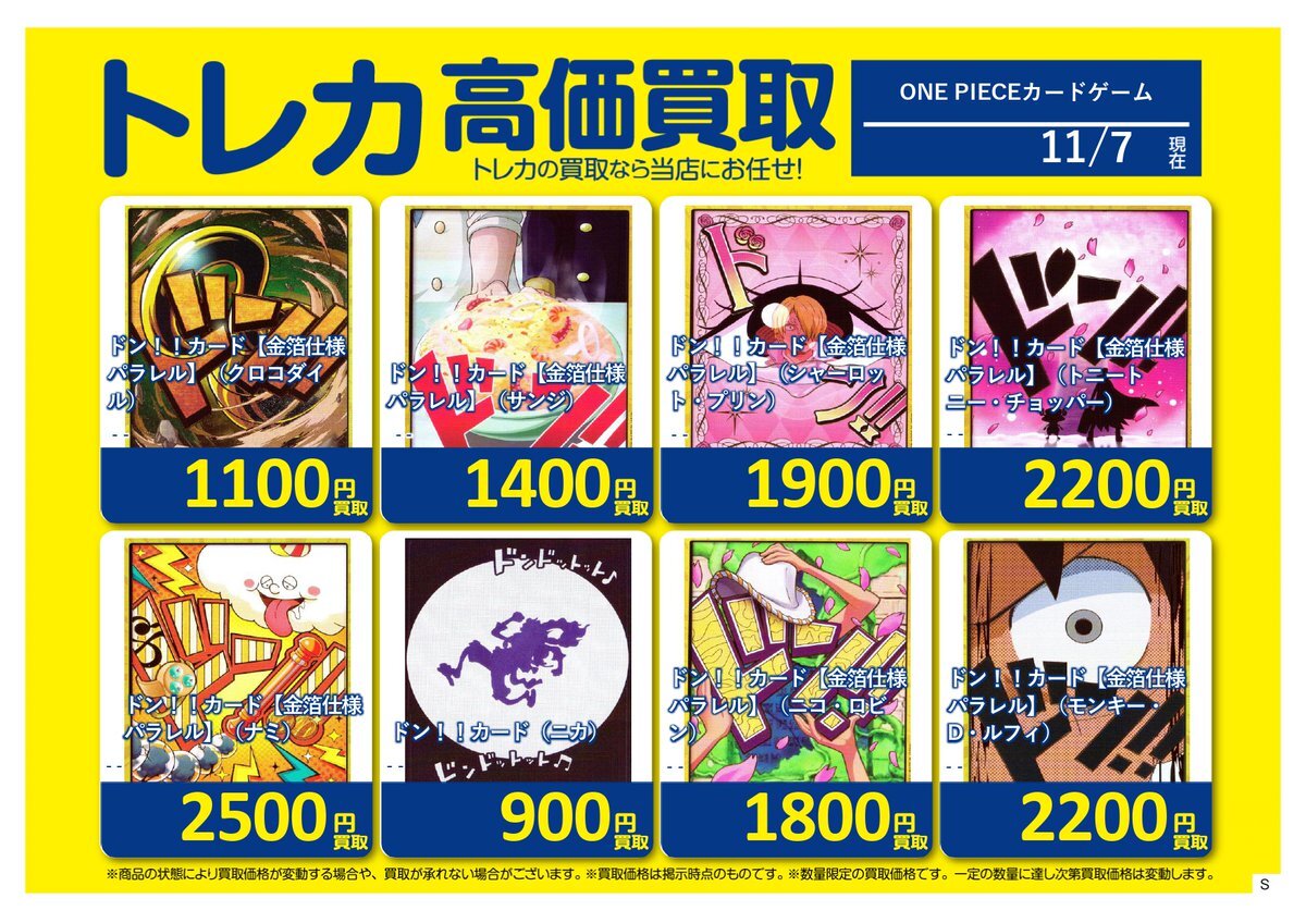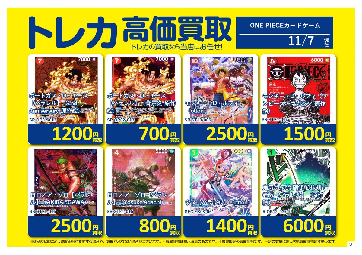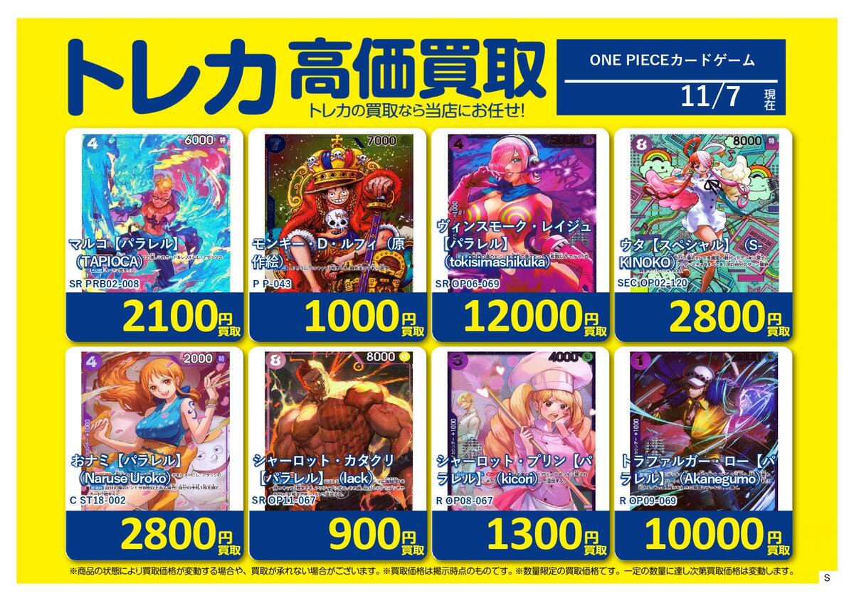 【高価買取情報 #OP】#梅田しっぽのOP買取表 11/8(土) 開店時~ 数量限定・美品での買取価格となります☑ ※相場変動により、予告なく終了または表示価格の適用外となる場合がございます。 pic.x.com/fY6O9kqoz7
