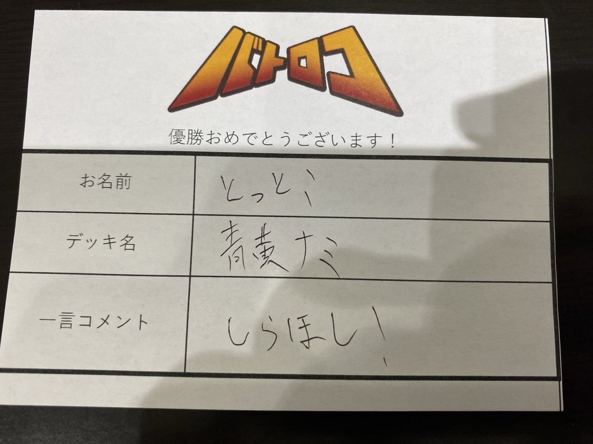【大会結果報告】#OP #ワンピースカードゲーム スタンダードバトル 本日の優勝者は 「とっとこ」さんです👏👏 デッキ名 『青黄ナミ』 一言 「しらほし!」 優勝おめでとうございます🎉🎉 #ベイロコ #横浜 #バトロコ pic.x.com/CYHmi2rEPK