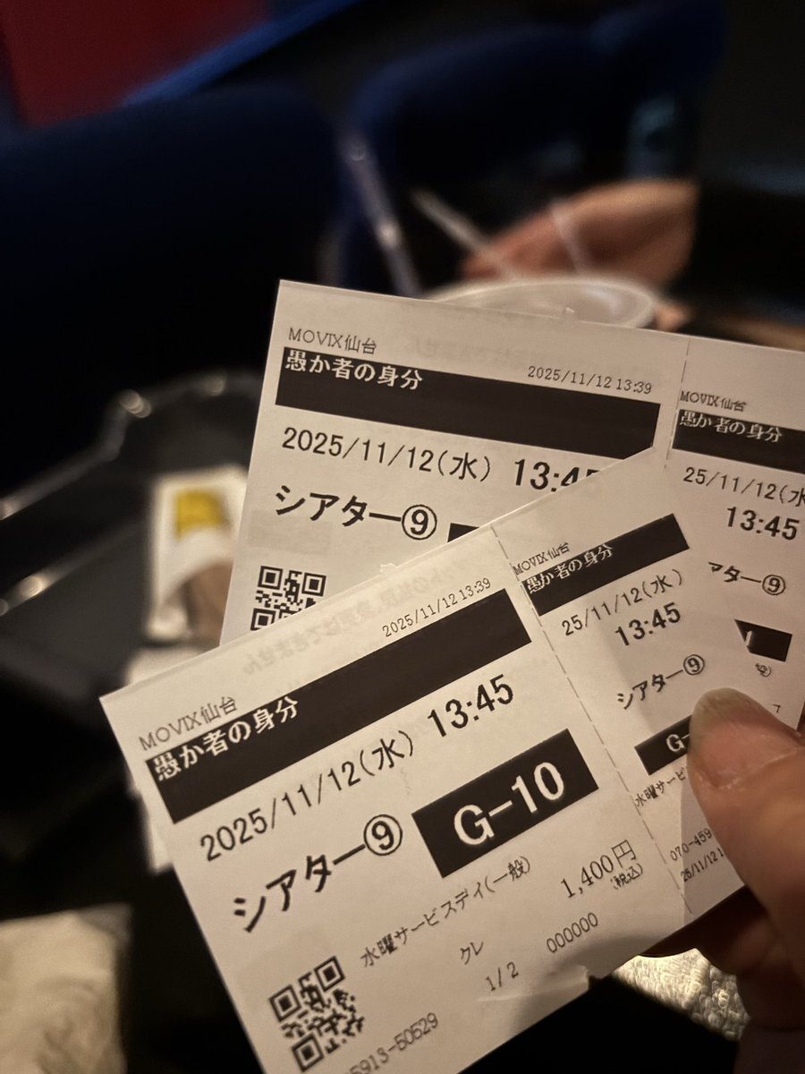 本日観てきました。 私は2度目だけど旦那と息子達は初めて。 観終わってからいろいろ感想いただきました、ぜひ小説も読んで欲しい。 #orokamono_1024 #愚か者の身分 #西尾潤 pic.x.com/btZfdTITS6