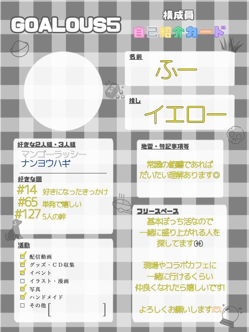 💌 𝕄𝕪 𝕋𝕒𝕘 現場で会ったり普段から遊んだりできる方を探してます🫶 画像の方中心の雑多垢です💭 気軽に♡で反応ください✊ 詳細はリトリンへ 【lit.link/1755_fc963】 #声優クラスタさんと繋がりたい #ブレマイ好きな人と繋がりたい #SideM好きな人と繋がりたい #A3好きな人と繋がりたい