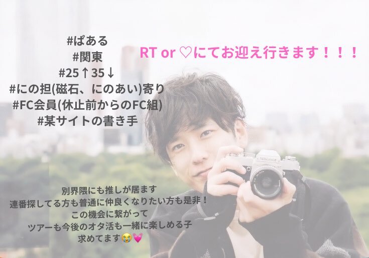 と、とりあえず嵐のツアーの同行者も決まってないけど嵐ファンのオタク達よければ繋がりませんか??? めちゃくちゃ簡易タグなんですけど() #あらしっくさんと繋がりたい #嵐ファンと繋がりたい #嵐担と繋がりたい #わーーージャニオタさんと繋がるお時間がまいりましたいっぱい繋がりましょ