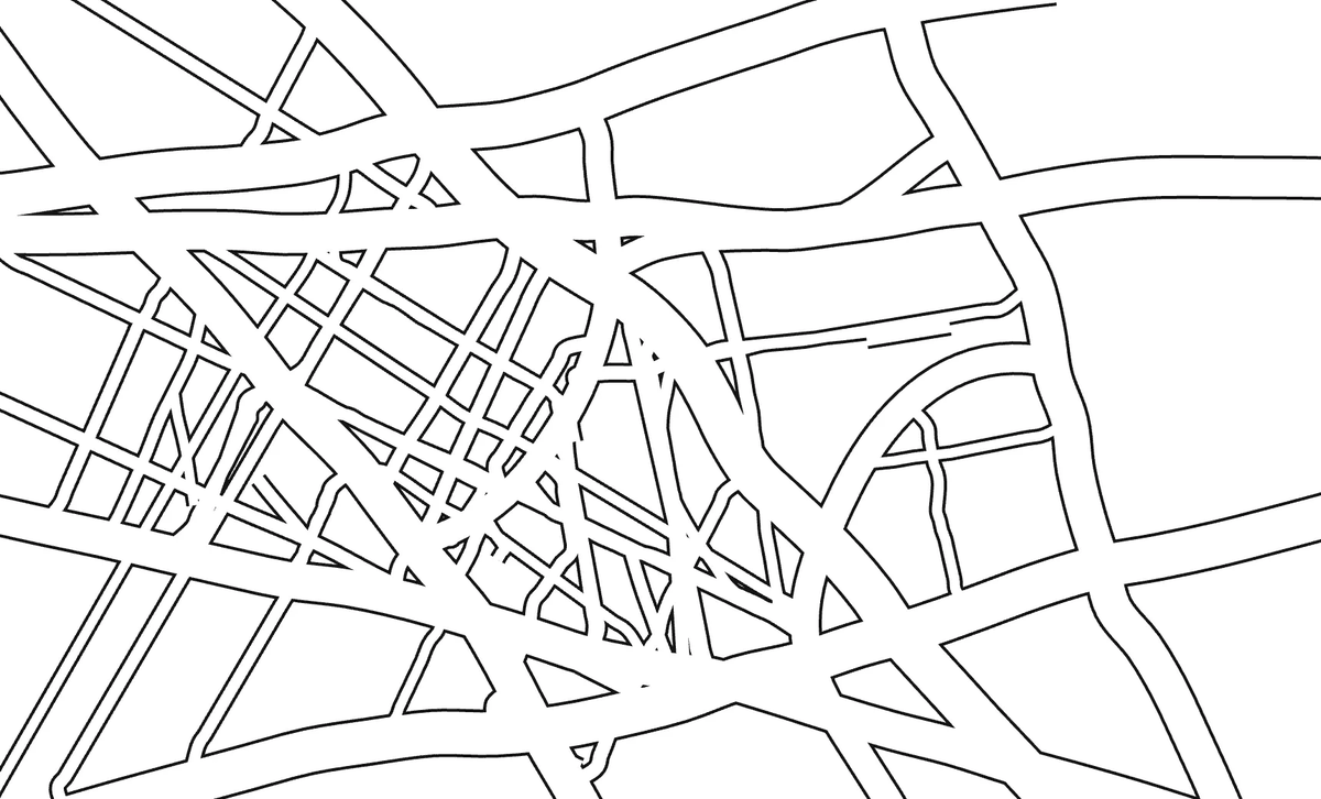 仮想の、いろいろな街の地図を描くジェネラティブアートを作る。 まずは道を作るところから始めてます #p5js #creativecoding