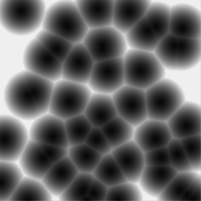 WIP Voronoi in B/W /#p5js #openprocessing openprocessing.org/sketch/2825446 ボロノイ図に各中心から境界線までの距離で明暗をつけたもの。二枚目は明暗を逆にした。 pic.x.com/QguQ3wxA0P