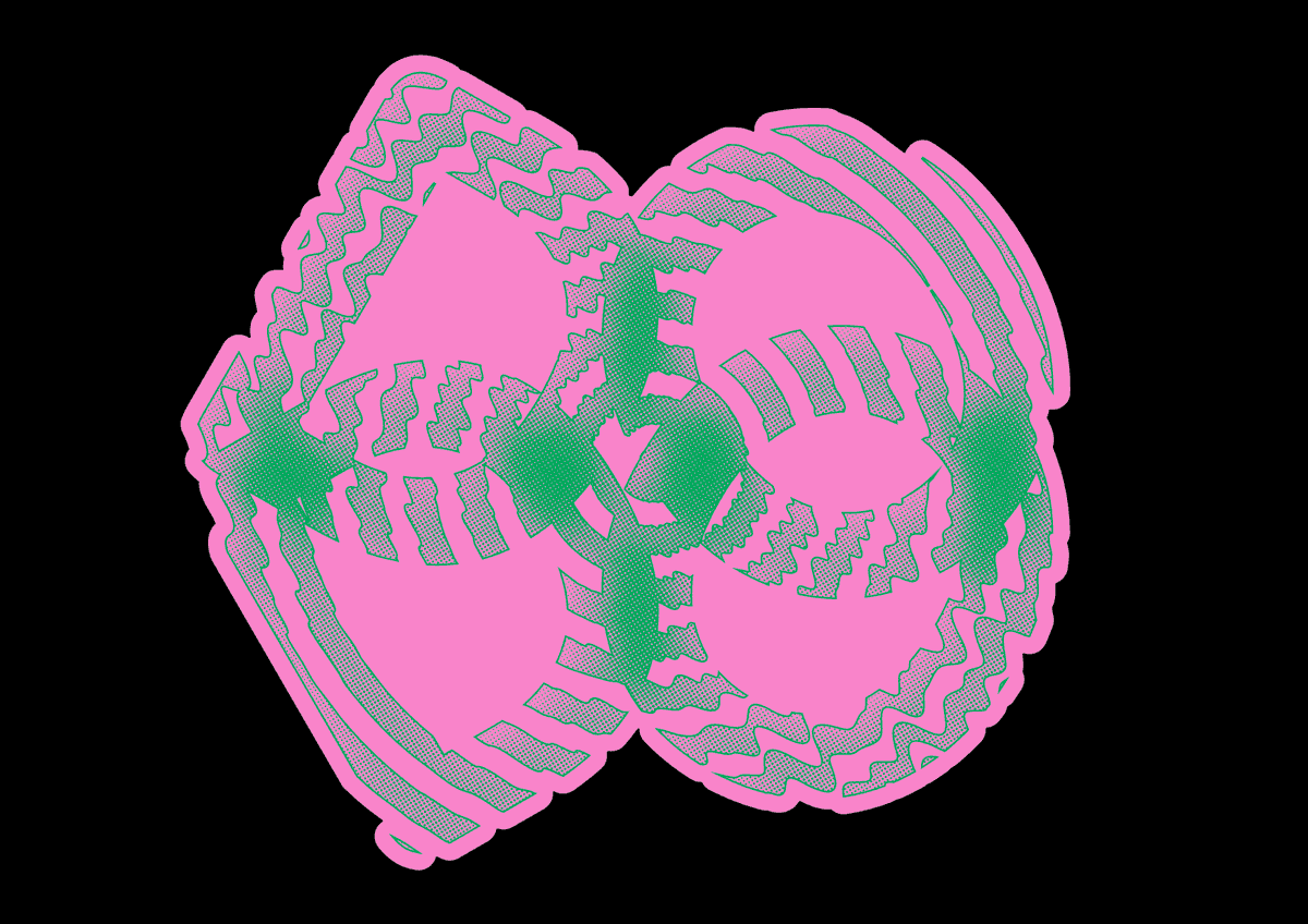 パスの内側にある穴を除去するPathRemoveHoles関数を書いたので、オフセットしてから穴を除去してダイカットステッカー的な表現をすることが可能になった。 #dailycoding #p5js #pavejs #risograph