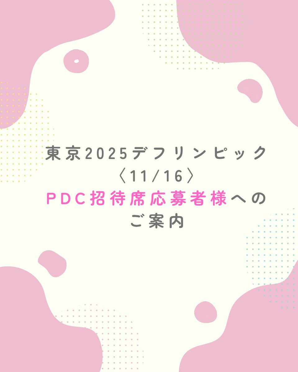 🎉#東京2025デフリンピック 当日の来場に関するご案内🎉 ご招待席への応募ありがとうございました🙌 案内について疑問点ございましたらお気軽に #PDC の各SNSへお問い合わせください。 PDCでは引き続きデフリンピックへのご招待を行っております🤍 応募フォーム:forms.gle/Dm6LFzaSn1FNPV… pic.x.com/Bm8ufm4ex1