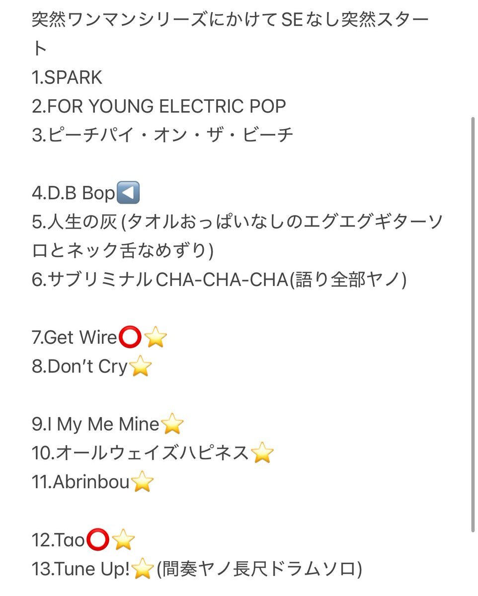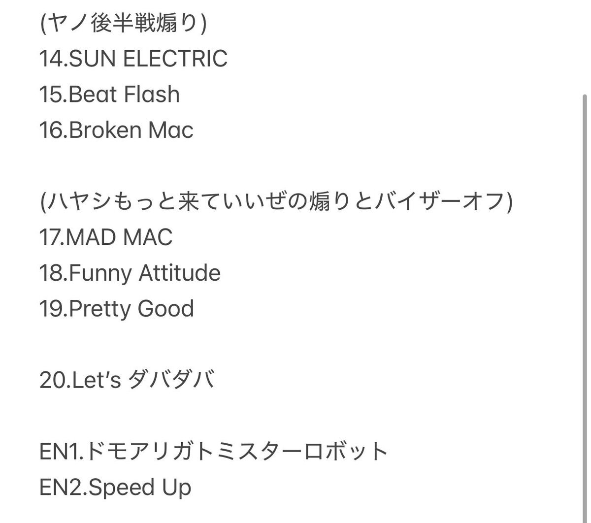 11/14 POLYSICS@松山Double-u studio 「突然ワンマンシリーズ vol.2 久々の松山」 セトリ #POLYSICS #POLYSICSはいいぞ #ポリシックス ⭐️ハヤシGuストラトキャスター使用 ⭕️新曲(2025年に入って披露した新曲) ◀️既存の新曲(去年以前に披露済みの未音源曲) pic.x.com/SE7LDo7jrS