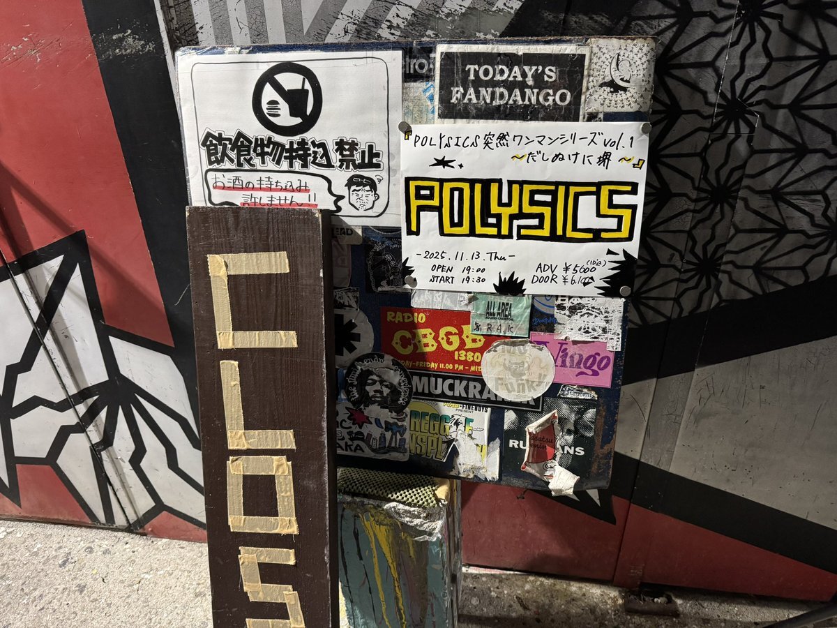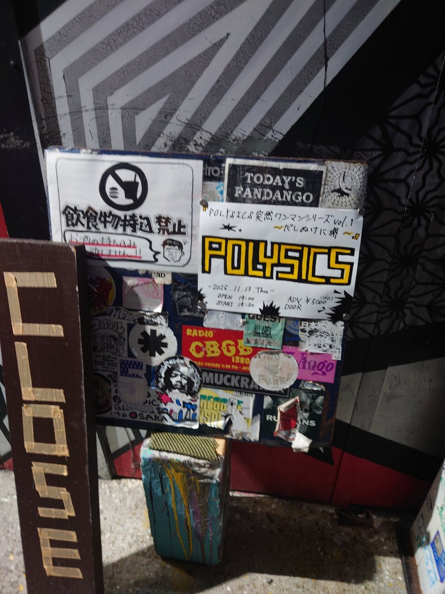 堺?どこ?ってなりながら行った大阪での(お笑いじゃない)ライブ、あほほどよかった!!! 会場みんな東京より元気な感じしたのに、定番曲でもダイブもモッシュもなし… あの距離感で痛い思いせずに観れたの最高… ◉あとは自由です。 壁の注意書きめっちゃよきーーー #polysics #堺ファンダンゴ pic.x.com/xCD6zpi1L1