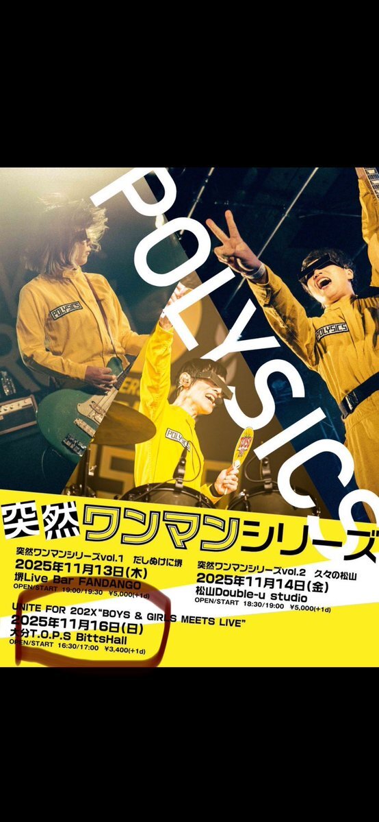 当券駆け込みできるよ愛媛のみなさ〜ん!!! #POLYSICS x.com/polysics_toisu…