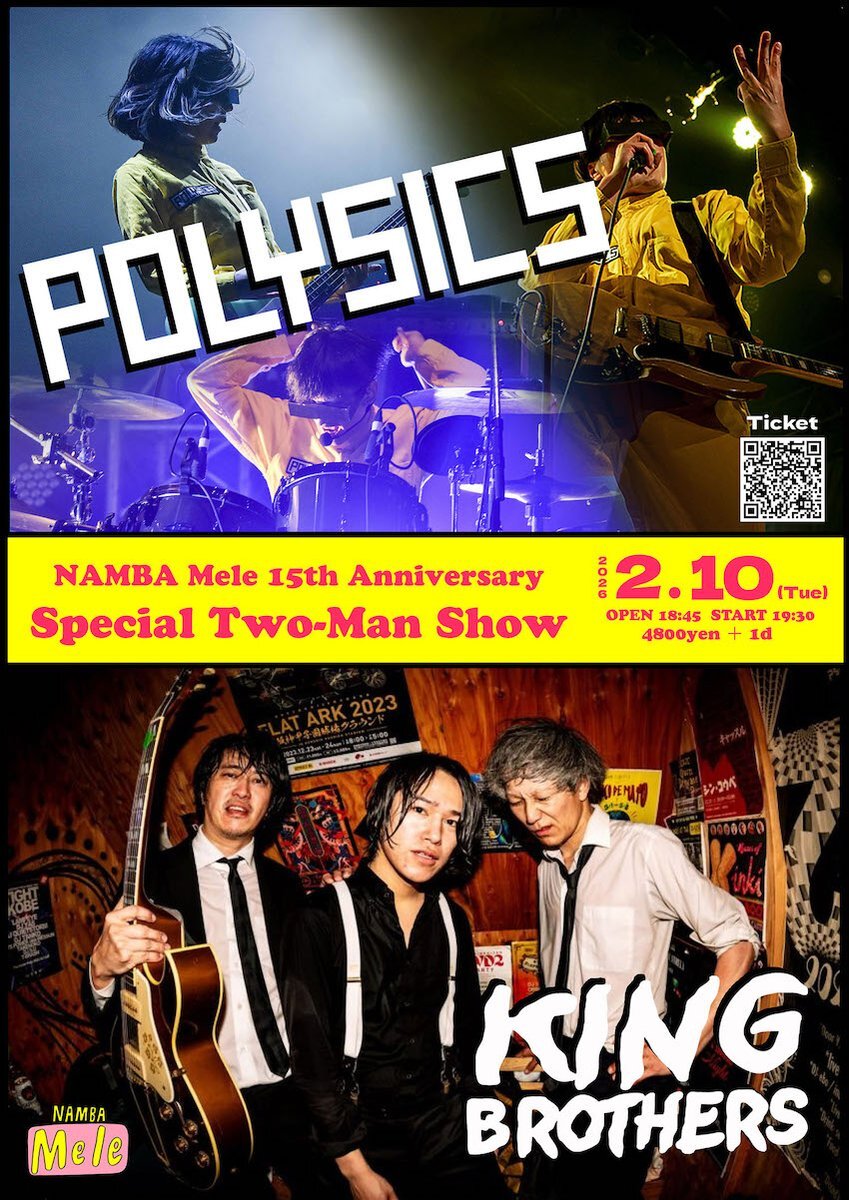 【⚡️難波Mele15周年をPOLYSICSを祝う!⚡️】 26年2月10日(火・祝前日) at #難波Mele にて、#キングブラザーズ が愛する大阪のライブハウス #難波メレ の15周年を祝うスペシャルイベントが開催!#POLYSICS VS #KingBrothers をお見逃しなく! 🔥チケット発売中! 🔥 eplus.jp/sf/detail/4427… pic.x.com/uRP26ZwAQQ x.com/mnzm2_p/status…
