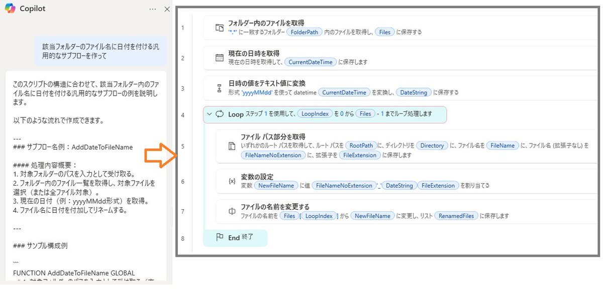 PAD(Premium版)のCopilotに「該当フォルダーのフィル名に日付を付ける汎用的なフローを作って」と聞いた回答を貼り付けたら、ほぼそのままで動くフローが出来ました! 進化してます。そのうちフローを自動生成してくれるところまでいくでしょう! #PowerAutomateDesktop pic.x.com/0EhQCbeIHV