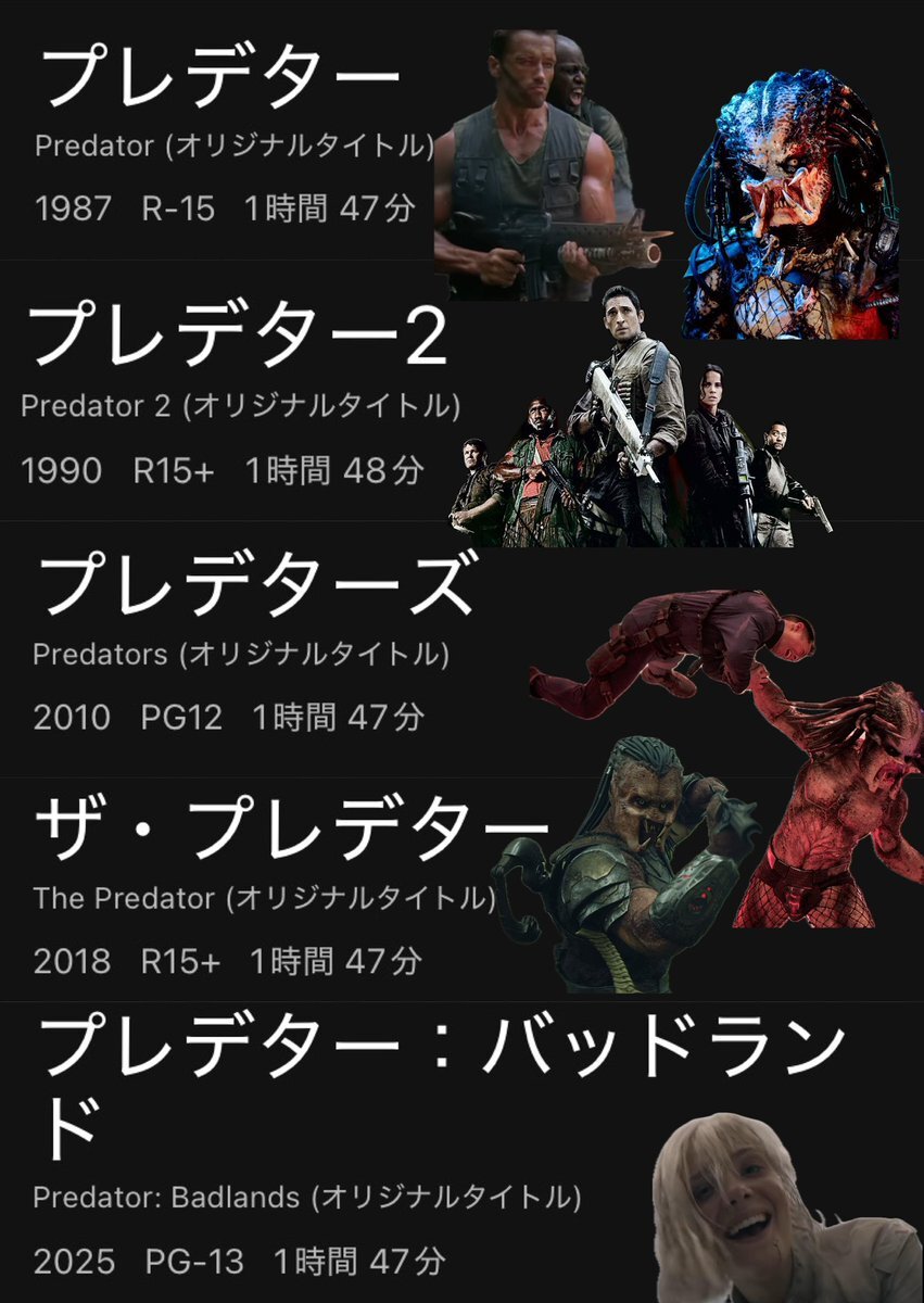 観てきました❗ 字幕版はもうレイトショーしかなかったから 遅くに観てきました。 面白かった(^-^) 長年のプレデターファンが観たら こんなのプレデターじゃないっていうかもしれないけど 自分は面白かった(^-^) #プレデター #プレデターバッドランド #predator #predatorbadlands pic.x.com/KvHY5ZV6Fc