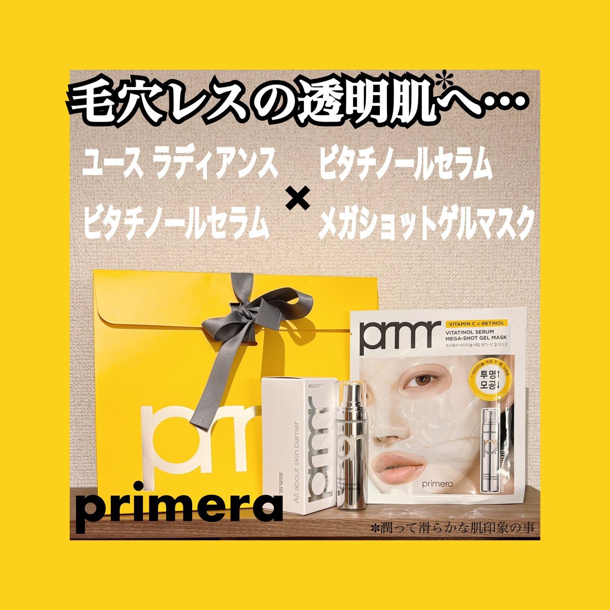 に整え、毛穴レス印象*3 のツヤ肌へと導くそう... まるでエステを受けたような 贅沢な仕上がりで特別な日の 前日に使用したいと思いました💫 *1 アスコルビン酸 (整肌保湿成分)、レチノール(整肌成分) *2 角質層 *3 うるおってなめらかな肌印象のこと #primera #プリメラ #amorepacific