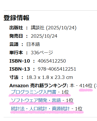 【売行好調🚀🚀】 新刊『Pythonではじめるオープンデータ分析』 amazon.co.jp/dp/4065412250/ Amazonカテゴリ 🏅「プログラミング入門書」 🏅「ソフトウェア開発・言語」 🏅「統計法・人口統計・資産統計」 でベストセラー1位となっております㊗️🎉 お買い上げいただいた皆さまありがとうございます🙌