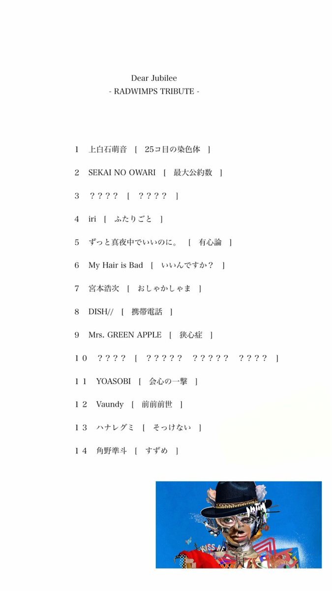 RADWIMPSが19日に発売する トリビュートアルバムのアーティストが 豪華すぎる!!! みんなどんな風にアレンジするのか楽しみ🤤 #RADWIMPSは私の青春 #1番好きな歌は五月の蝿 #RADWIMPS好きと繋がりたい pic.x.com/vQi5YR7FEb