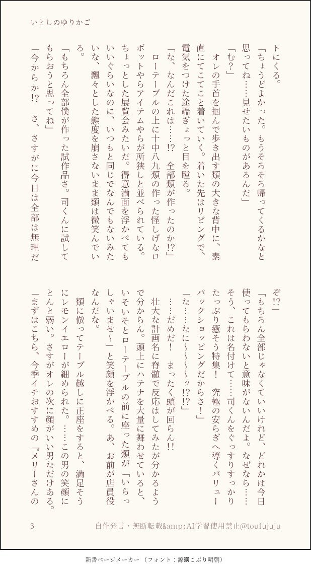 #ritk版深夜の60分一発勝負【@ritk_1h_2】 演目『オフの日』+1h ナチュラルに同棲してる🎈🌟未来軸。 当たり前の日常に幸せを見出す話。 (4/6) pic.x.com/YdeqUAgzQG