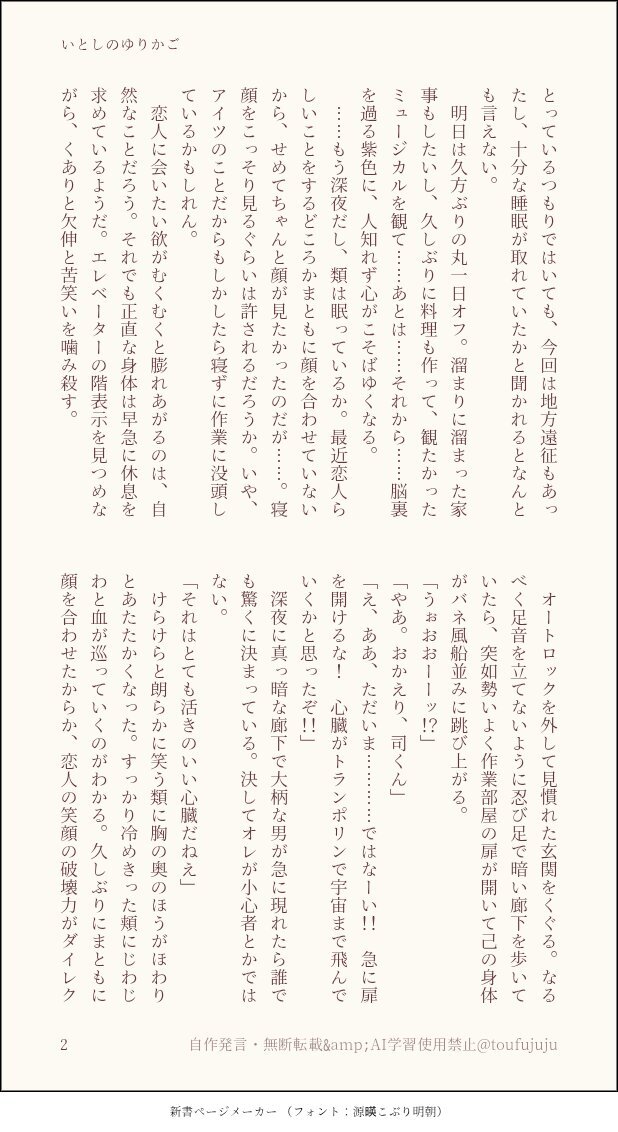 #ritk版深夜の60分一発勝負 (@ritk_1h_2) 演目『オフの日』お借りしました。ド遅刻失礼いたします。 🎈の腕の中が一番安心する🌟と、お疲れな🌟を癒すべくオフの前日に様々な癒しグッズを作っておすすめする🎈のお話。🌟視点。 ※成長同棲設定 ※誤字脱字齟齬は生温かい目で見守ってください (4/7) pic.x.com/VSOtRMGL60