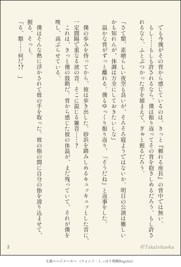 『オフの日』 +3.5h ルームシェアをはじめてから🌟を好きになってしまった🎈の片想い日記。🎈🌟(🎈→🌟)ハッピーエンド。未来捏造など諸々してます。(1/3) #ritk版深夜の60分一発勝負(@ritk_1h_2) 素敵なお題お借りしました。 pic.x.com/QNuKTgDmzq