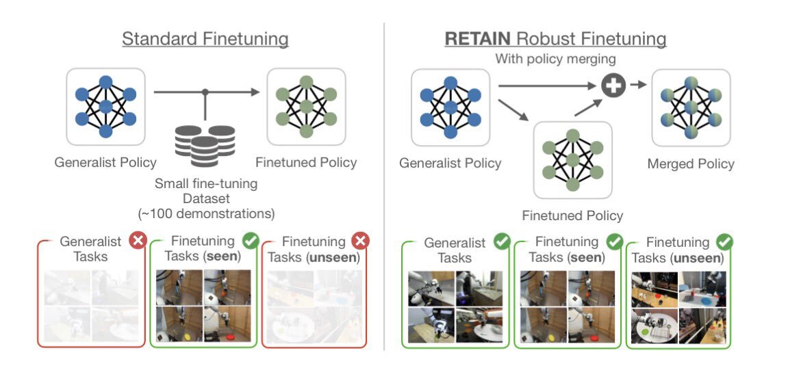 汎用VLAロボットポリシーを新タスクにファインチューニングすると、元のスキルが壊れがちな問題に対して、 「ベースモデル」と「FTモデル」のパラメータを補間するだけで、旧タスク能力を保ったまま新スキルを取り込めるという報告 arxiv.org/abs/2512.08333 #Robotics #VLA #ロボティクス pic.x.com/yOad3ulhfe