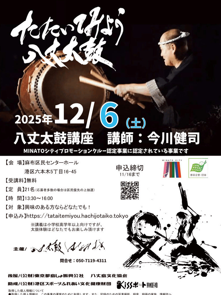 元八丈高校の熱血教師・今川先生が八丈太鼓の魅力を伝えます! 申込詳細 tataitemiyou.hachijotaiko.tokyo #八丈太鼓はなみずき #八丈太鼓 #和太鼓 #たたいてみよう八丈太鼓 #港区 #japanesedrums #Wadaiko #HachijoTaiko #TryTaiko #TaikoExperience #TokyoActivity #Roppongi #VisitJapan #JapanCulture pic.x.com/upa0Glc4Vm
