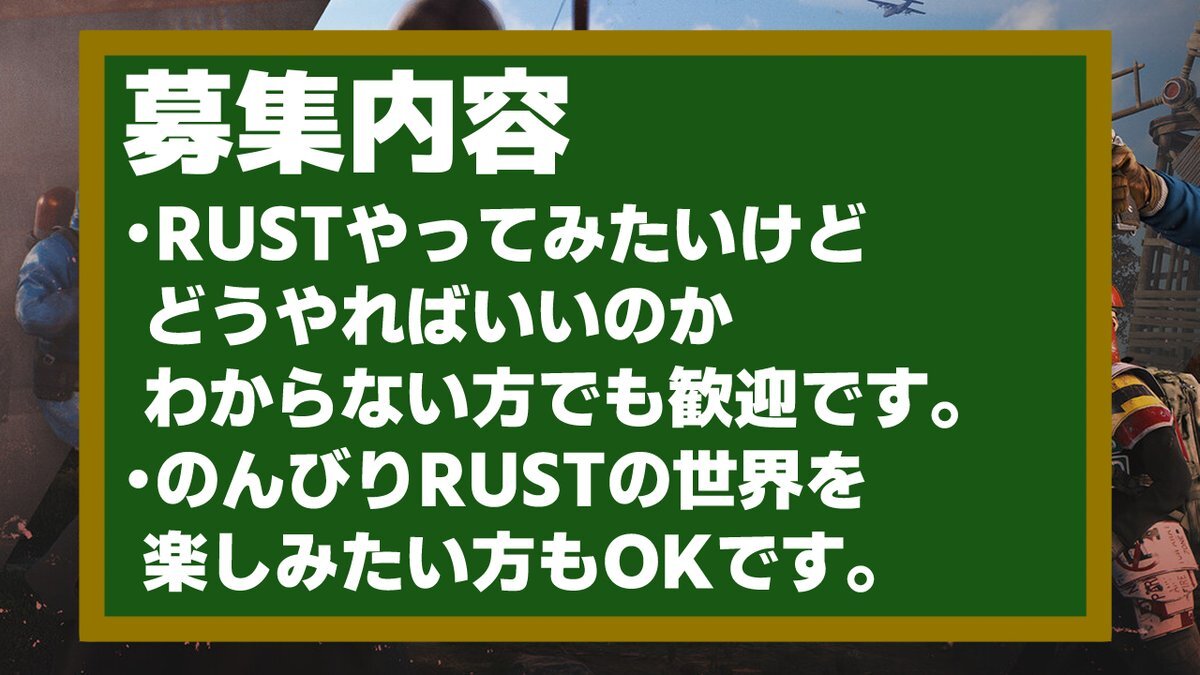 🐡RUSTクランの中島水産では 新規メンバーを募集中です! 🔰初心者さんでも大丈夫 👂報告・連絡・相談ができる方 💪やる気に満ちあふれている方 ↓詳しい募集要項はこちらでご確認を! youtube.com/@yunapoch/about DMお待ちしています。 YouTubeにて毎日活動中です('ω') #rust募集 #Rust #rust募集pc