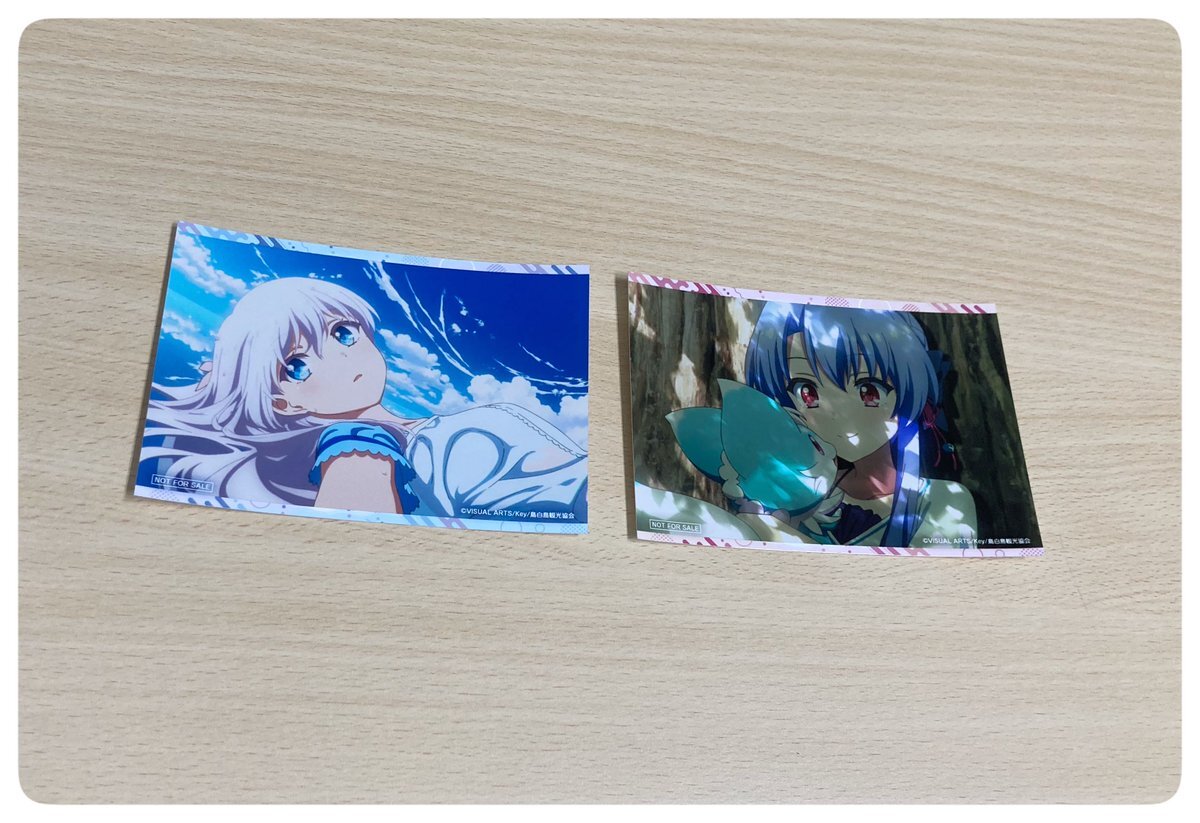 ディ・テクノ(@dtechno_777)さんより『Summer Pockets』のグッズサンプルを色々と頂きました。 「アクリルパネルVol.2」1.鳴瀬しろは、2.空門蒼 「トレーディング場面写ブロマイド(3枚セット)Vol.2」全7種 「【BOX購入特典】OPブロマイドVol.2」です。 #サマポケ #SummerPockets #samapoke pic.x.com/LTaFUys8WX