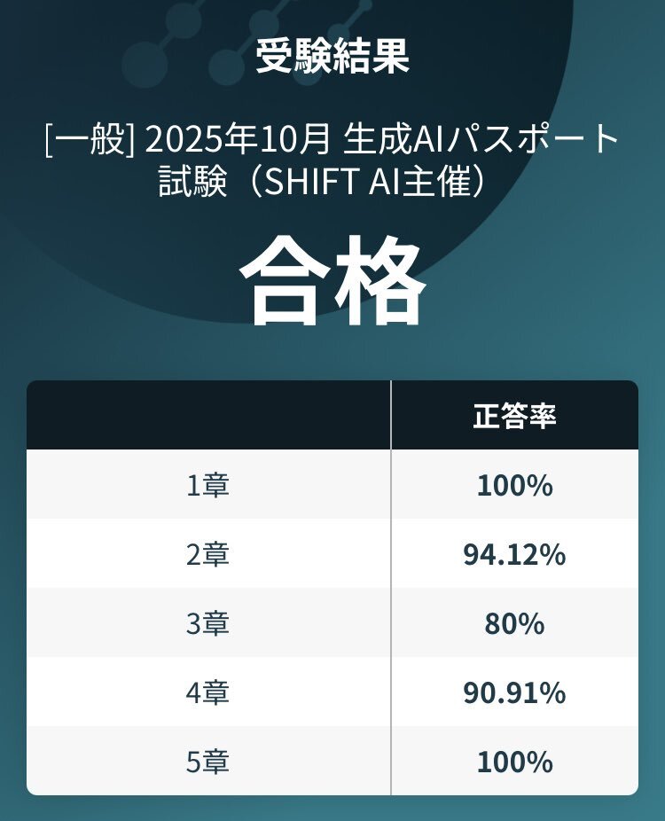 先月受けた資格、合格しました‼️ ありがとうございます🙌 AIの歴史、裏側の仕組み、著作権などの法律関係など、勉強になりました😌 これからも正しくAIと付き合っていきたいと思います♪ #生成AIパスポート #SHIFT_AI pic.x.com/Z24WNp6l0i