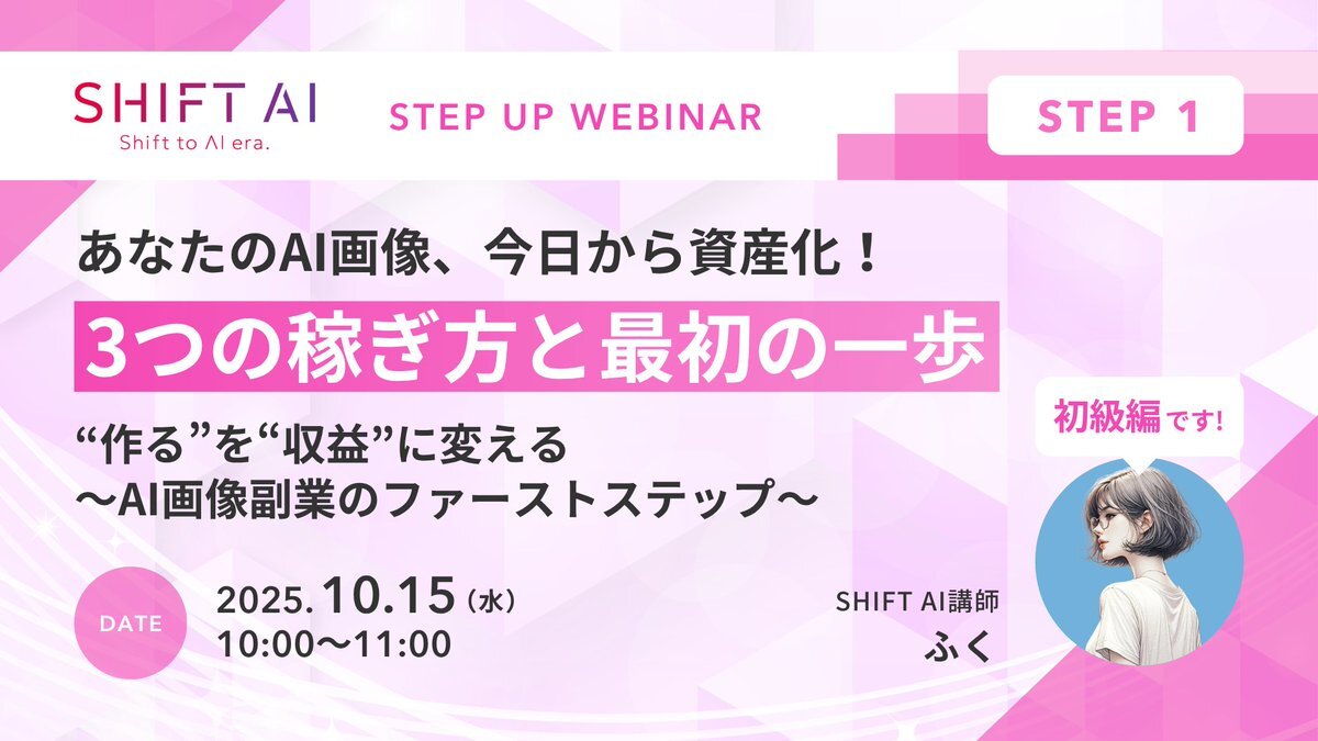 10月20日は、川合さんの出版記念プレミアムウェビナー! 会員様には、ウェビナー終了後にDiscordのアフタートーク会にもご招待させていただきます!! お時間に余裕をもってご参加ください!! #SHIFT_AI #ウェビナー x.com/SHIFT_AI_0/sta…