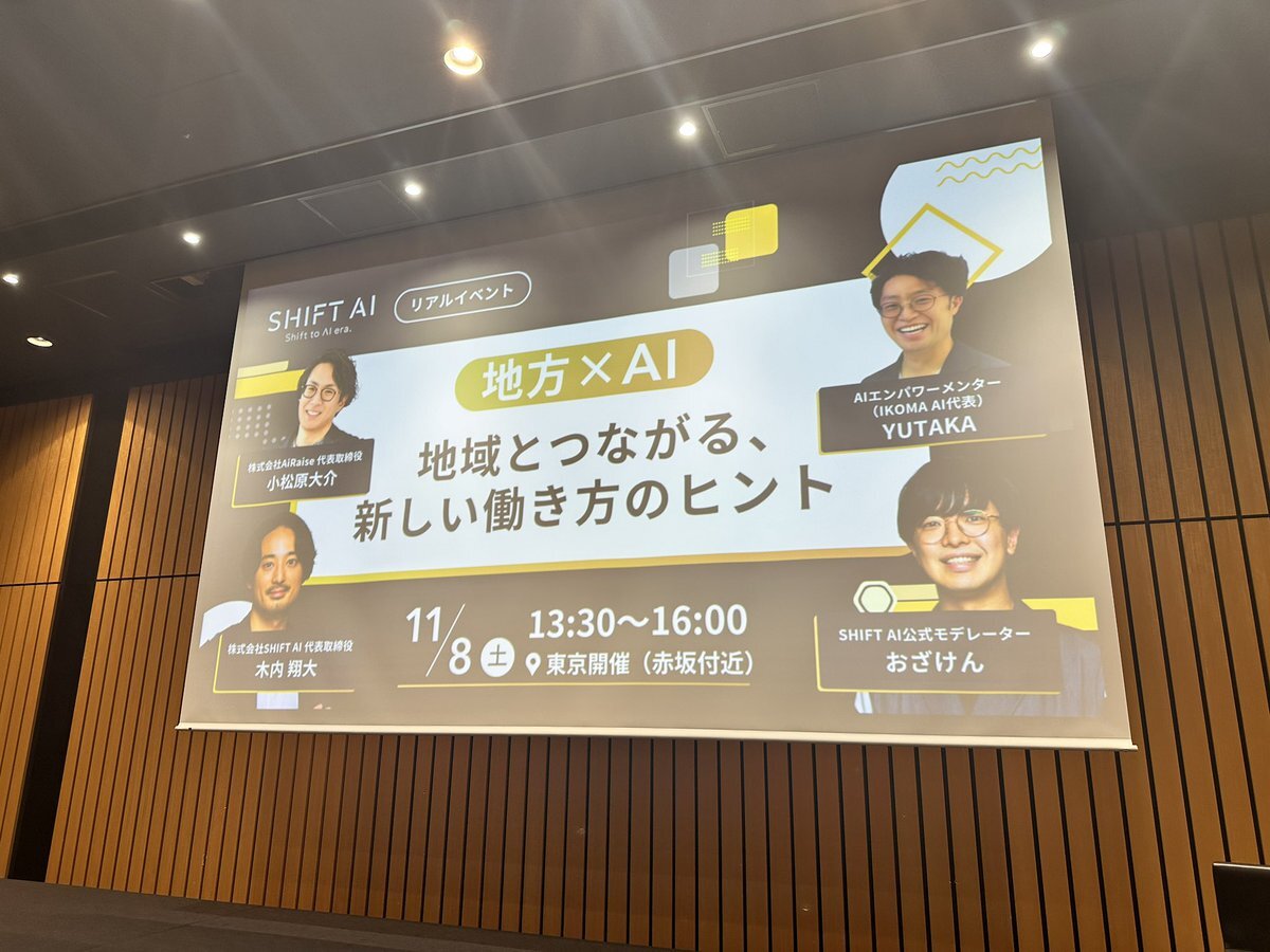 SHIFT AI「地方×AI活用セミナー」11.8 無事終了! 全国29会場とオンラインでも繋ぎ、総勢約450名とすごく盛り上がった時間。 地方×AIをテーマにこんなに多くの方と繋がれるとは…本当に感謝しかありません🙏 そして今回は、登壇の機会までいただき本当に光栄でした。 x.com/SHIFT_AI_0/sta…