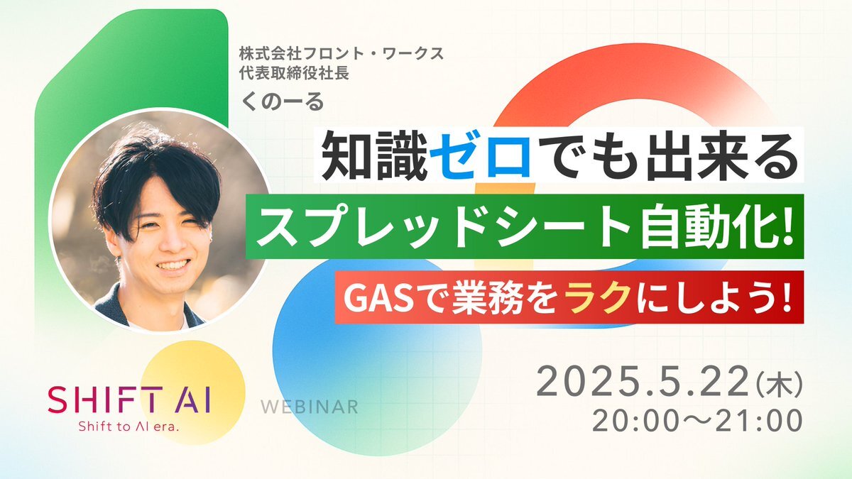 【会員限定✨プレミアムウェビナー】 \業務効率化、まだ手をつけてない人へ/ ✅ GASって聞いたことあるけど難しそう ✅ スプレッドシート業務、毎回手作業してる そんなあなたへ... 講師に株式会社フロント・ワークス代表取締役社長 くのーる氏(@Knorr_CS)をお迎えし、 x.com/SHIFT_AI_0/sta…