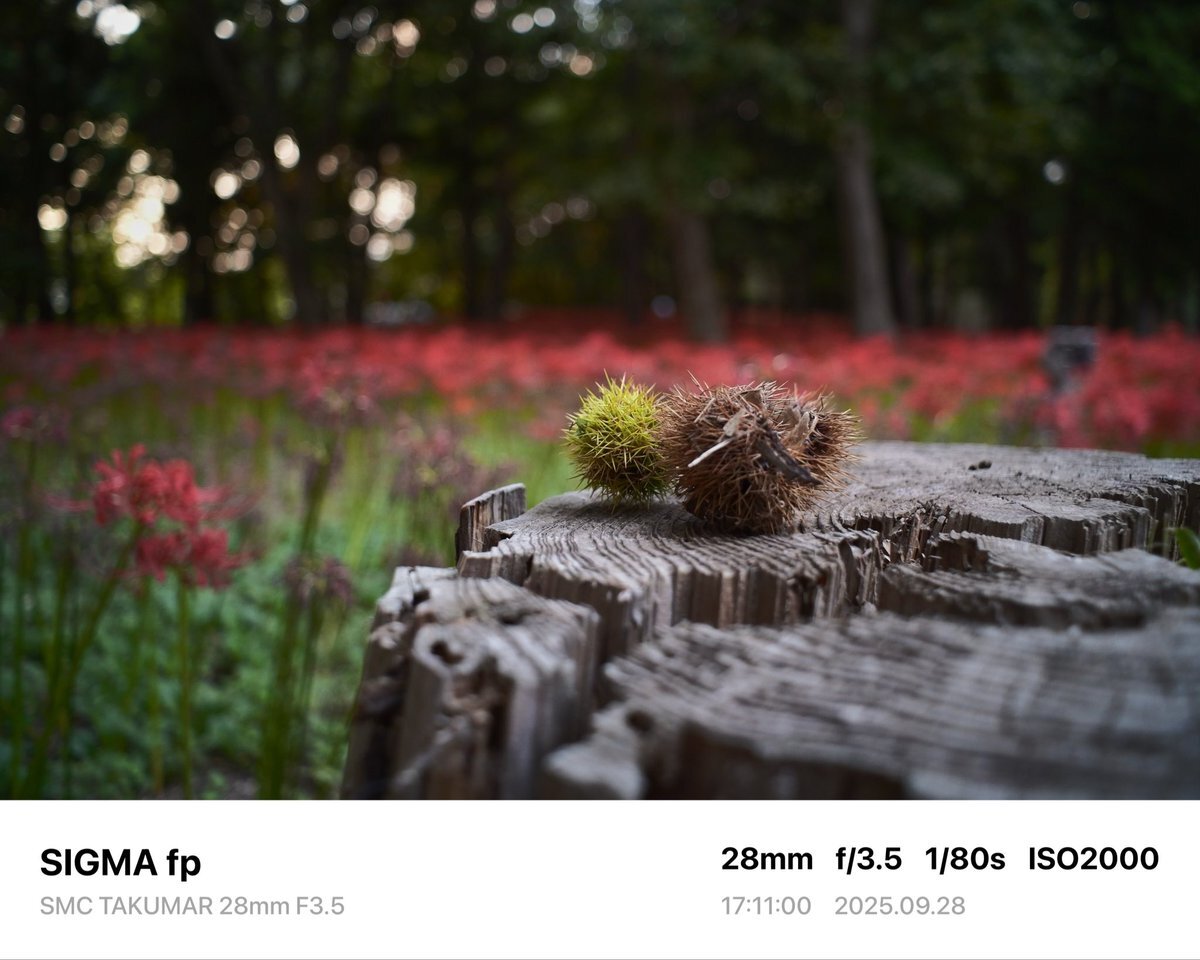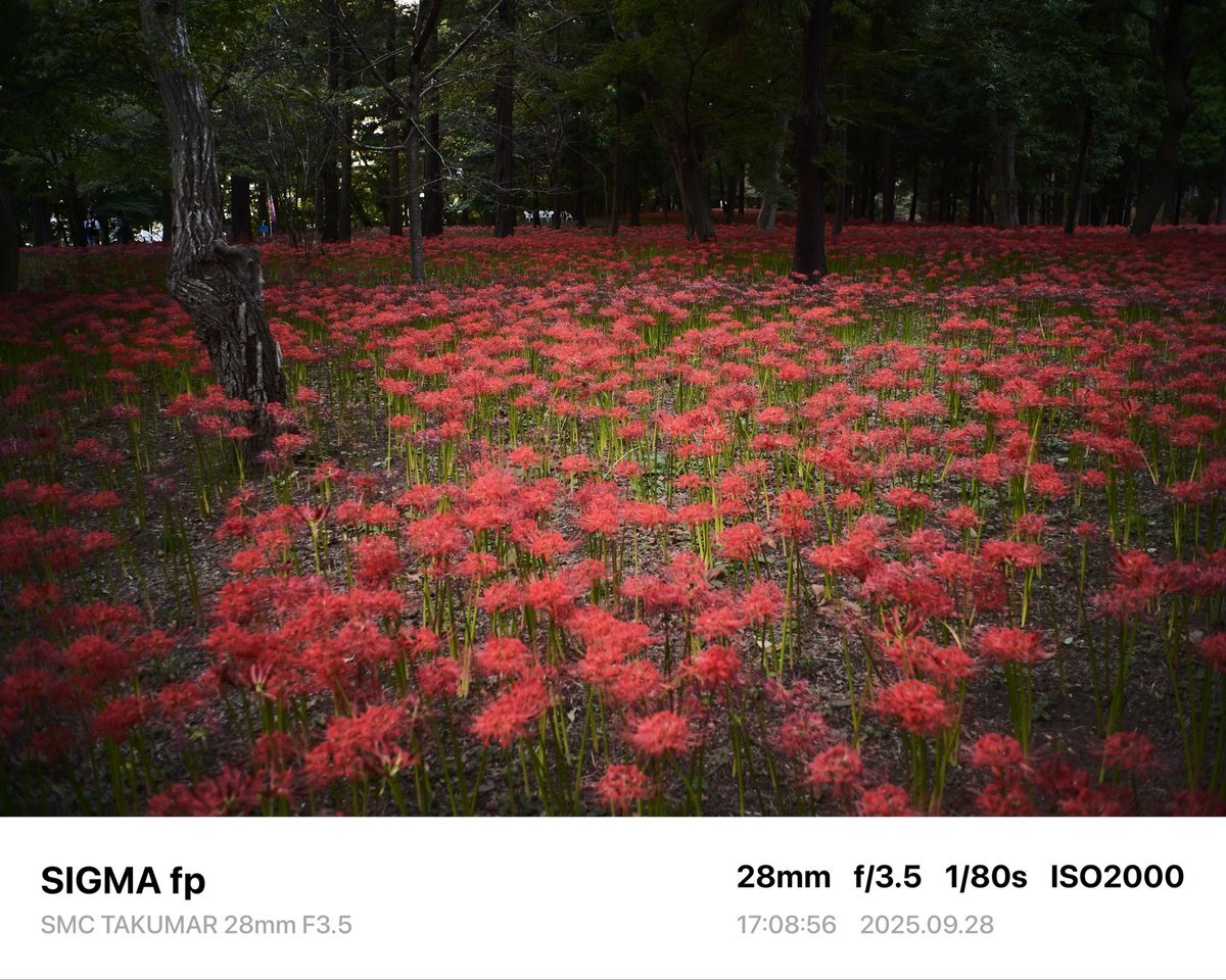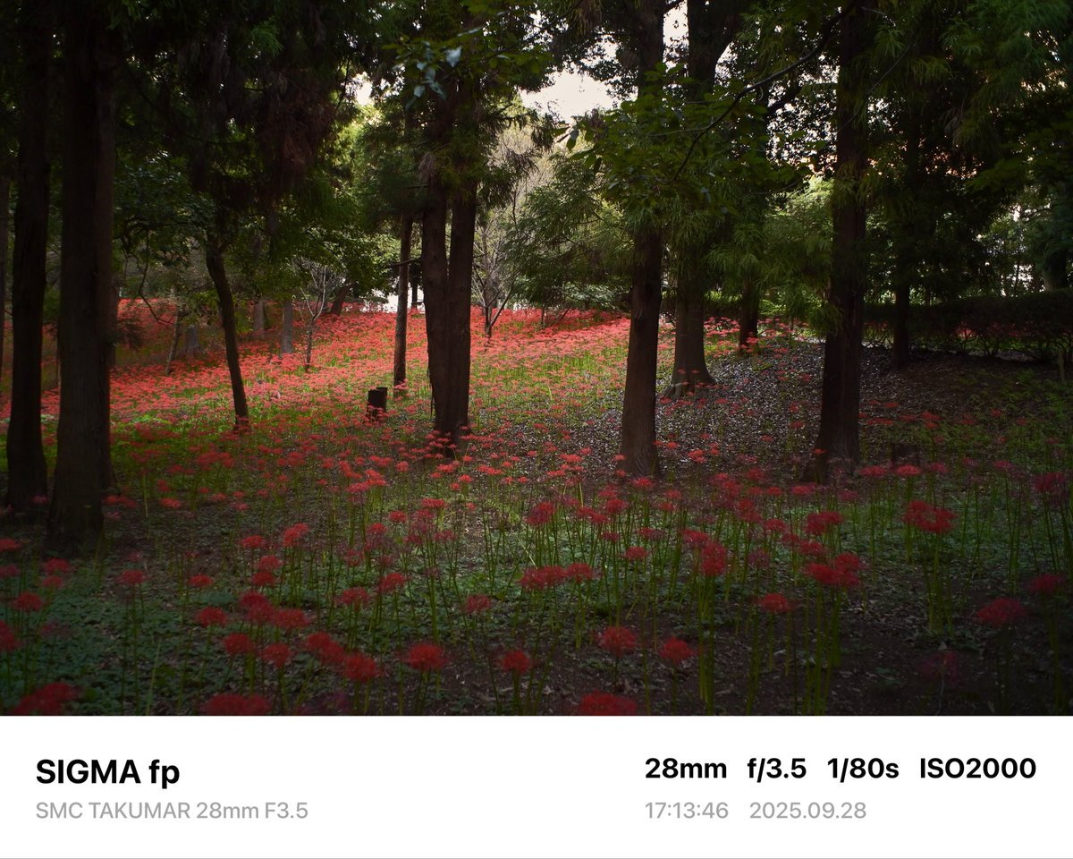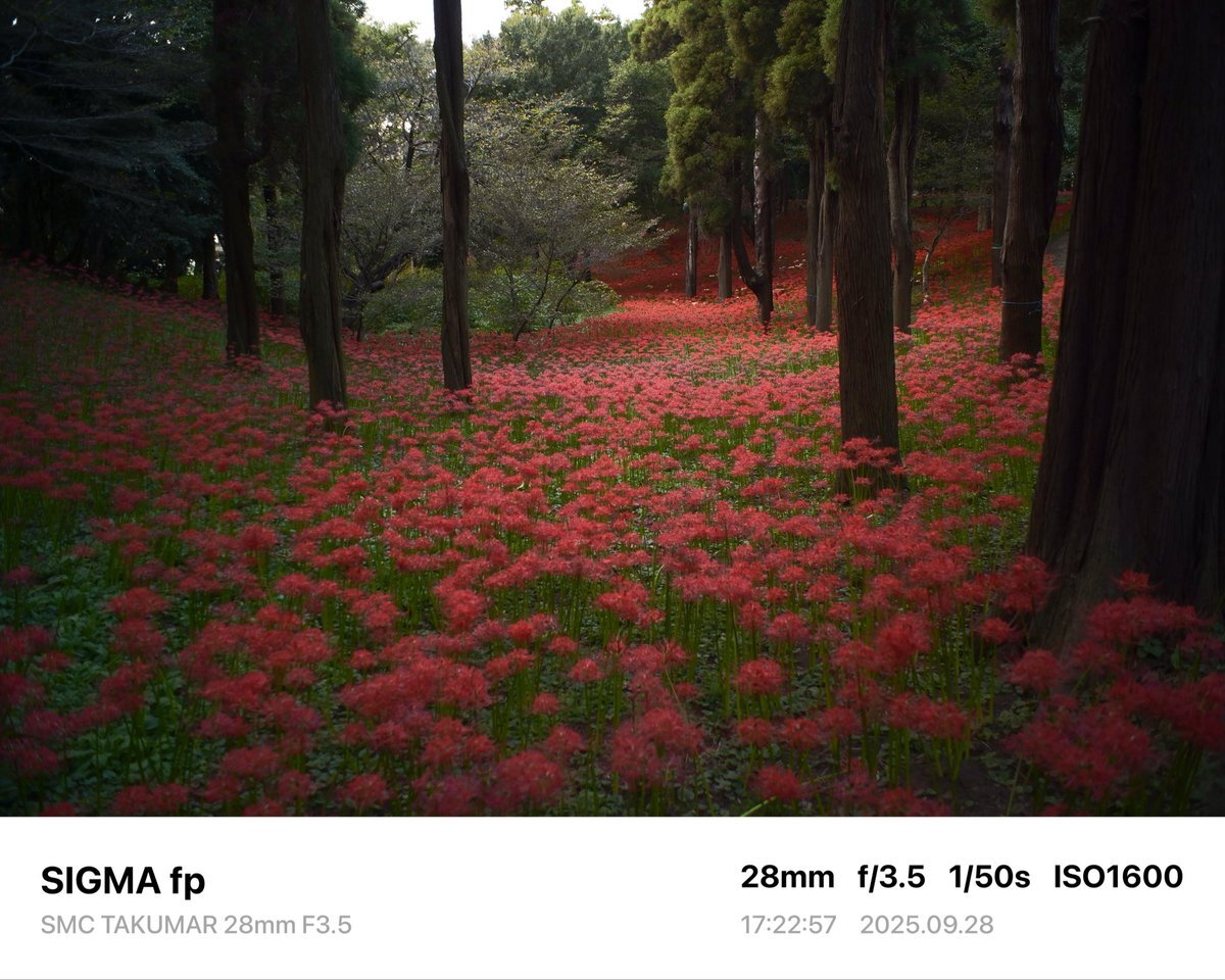 レンズ広角にした。周辺減光が良い感じ。 Camera→SIGMA fp Lens→SMC TAKUMAR 28mm F3.5 #sigma #sigmafp #pentax #smctakumar28mmf35 #photography #japan #オールドレンズ #oldlens #村上緑地公園 #彼岸花 pic.x.com/NT2Skd9oU1