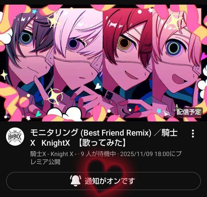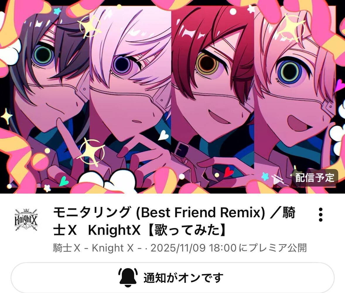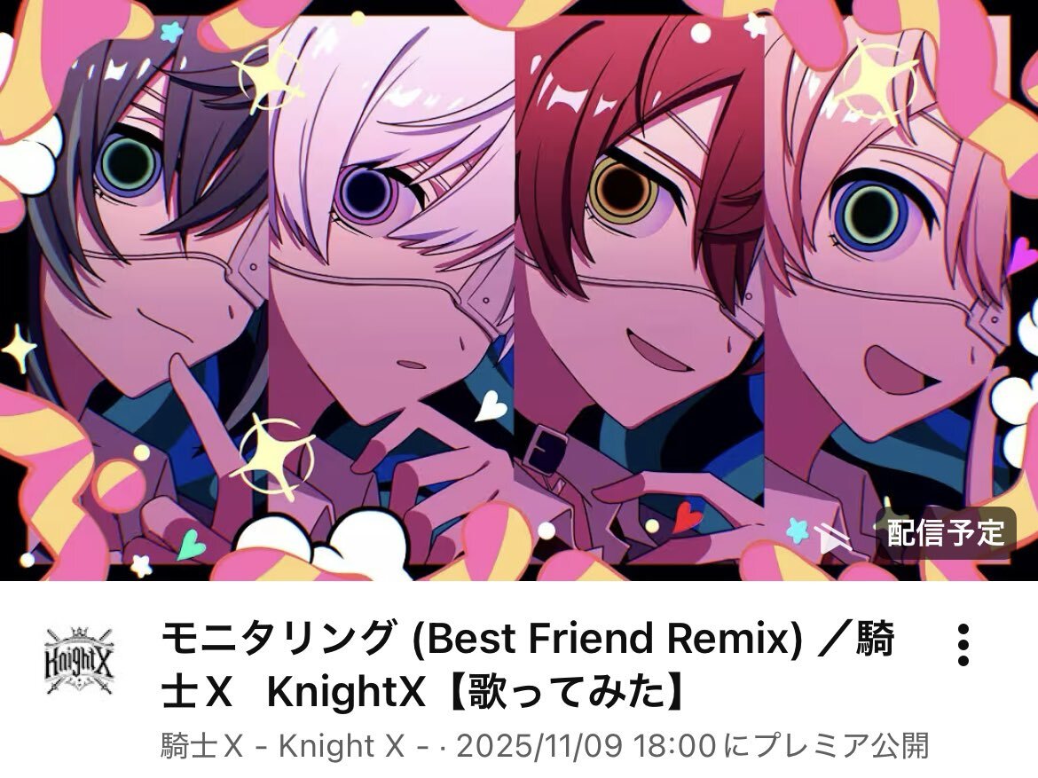 ⚔️#騎士X からのお知らせ 2025.11.9 本日18:00 #歌ってみた プレミア公開✨ モニタリング(Best Friend Remix) /騎士X - Knight X - 高評価・チャンネル登録・通知登録してお待ち下さい‼️ ➡️ youtu.be/JVsjeyVTApA?si… #STPR #ばぁうくん #てるとくん #しゆんくん #タケヤキ翔 pic.x.com/cpgCZe8lZl