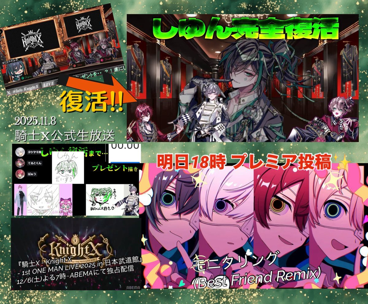 #しゆんくん 復活✨ 4人揃った騎士様からの🎁 2025.11.9 (日) 明日18:00プレミア投稿✨ モニタリング (Best Friend Remix) #騎士X -#KnightX - 【 #歌ってみた】 🔗youtu.be/JVsjeyVTApA?si… 今のうちに👍通知ONお願いします🙇🏻♀️ #ばぁうくん #てるとくん #タケヤキ翔 くん #STPR #歌い手 pic.x.com/ubW2BZAdmA x.com/vau0307/status…
